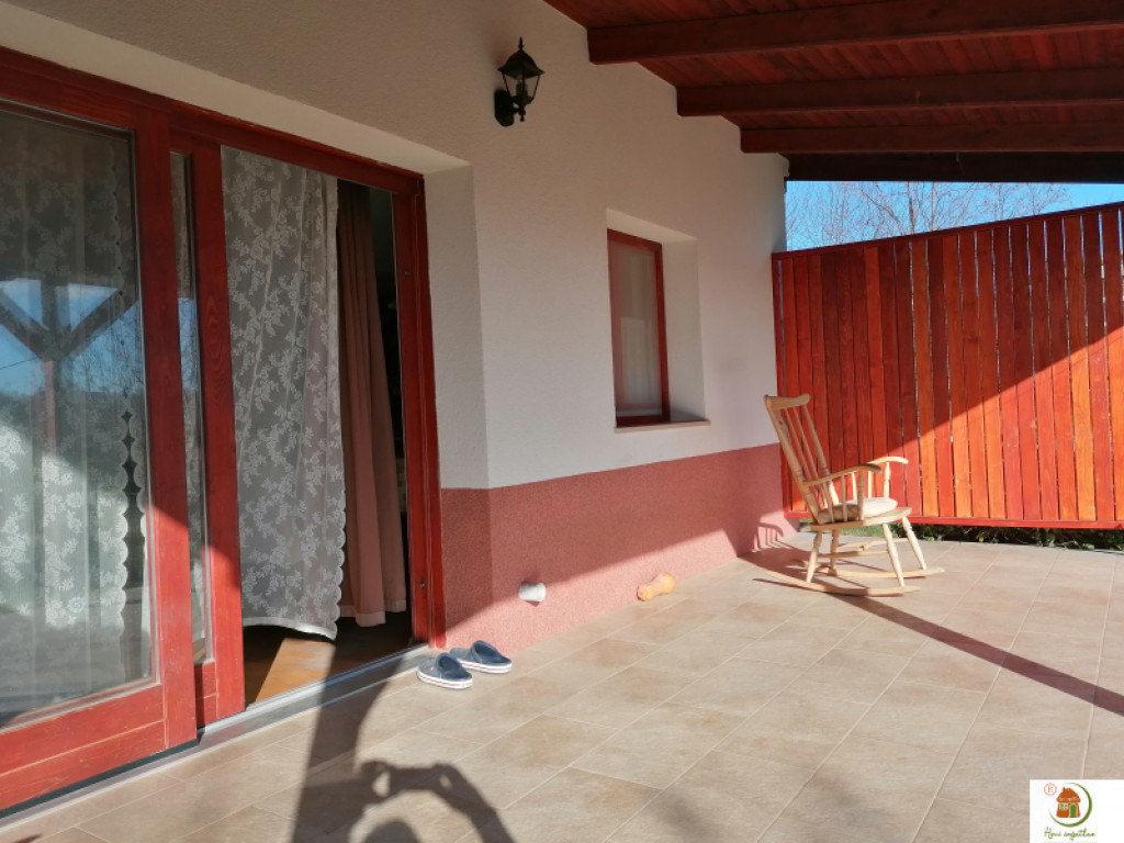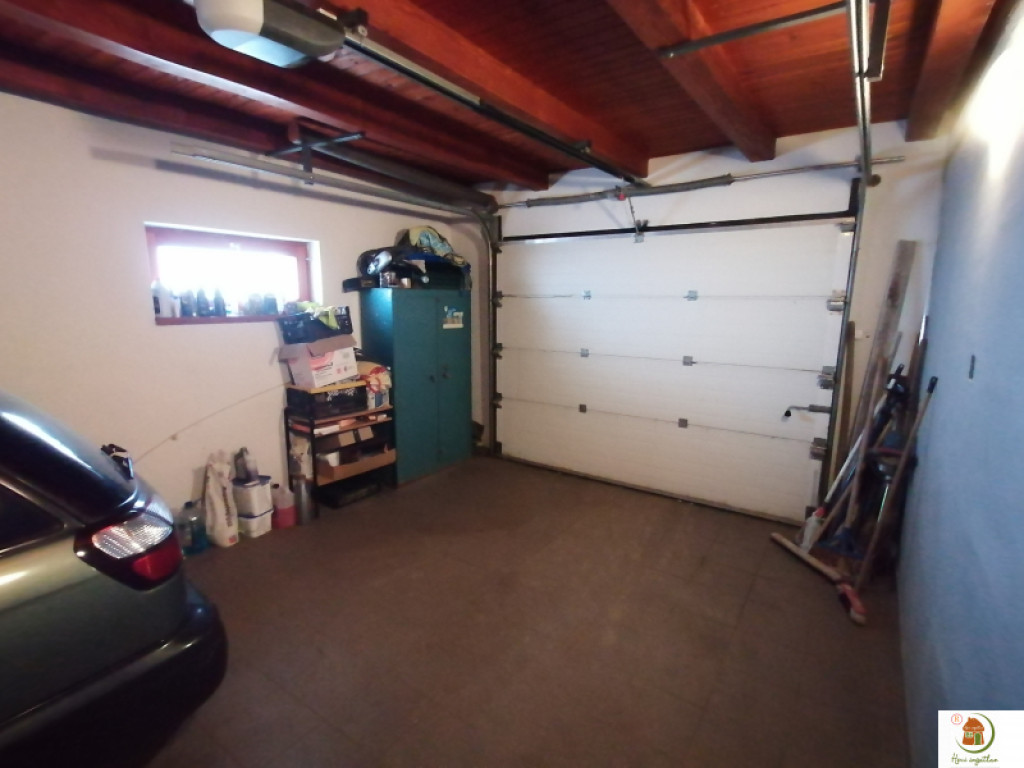 Nagy fedett terasz, kétállásos garázs és szép kert tartozik a házhoz.