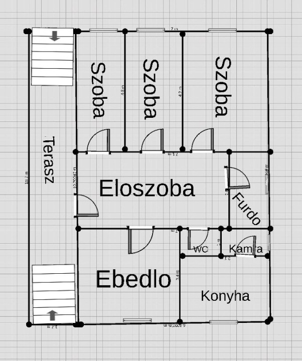 A házban egy tágas szoba, valamint két fél szoba található, ideálisak családi élethez vagy akár vendégek fogadásához. Az ebédlő és a konyha praktikus elrendezése lehetővé teszi a közös étkezések élvezetét, míg a külön fürdőszoba és vécé kényelmet biztosít minden lakó számára.