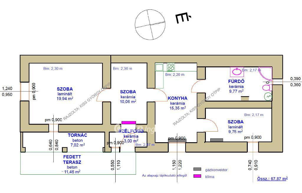 Fűtés: 2 gázkonvektor, fűtő-hűtő klíma.