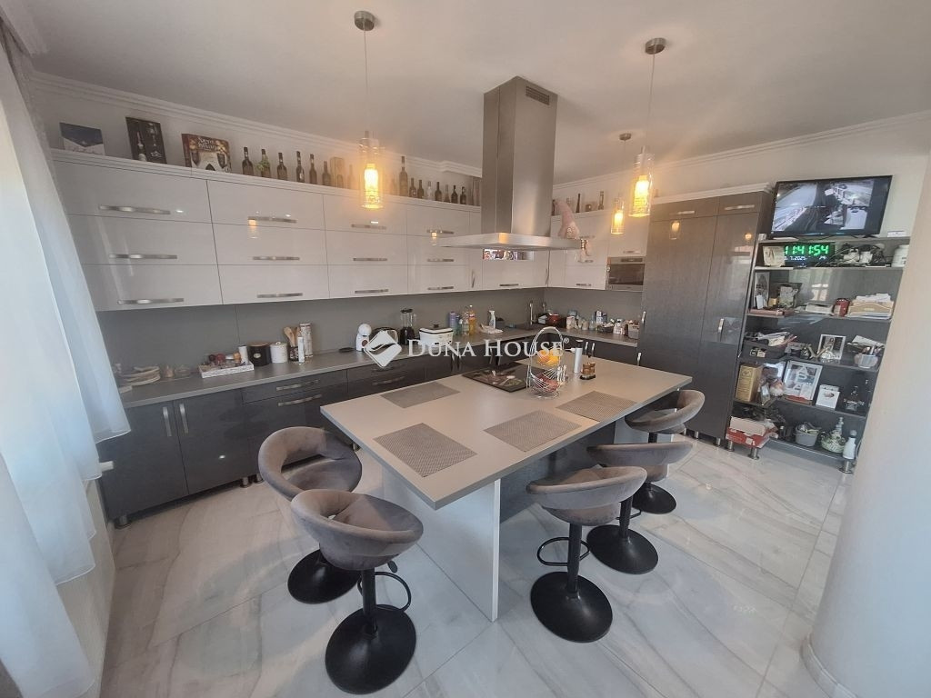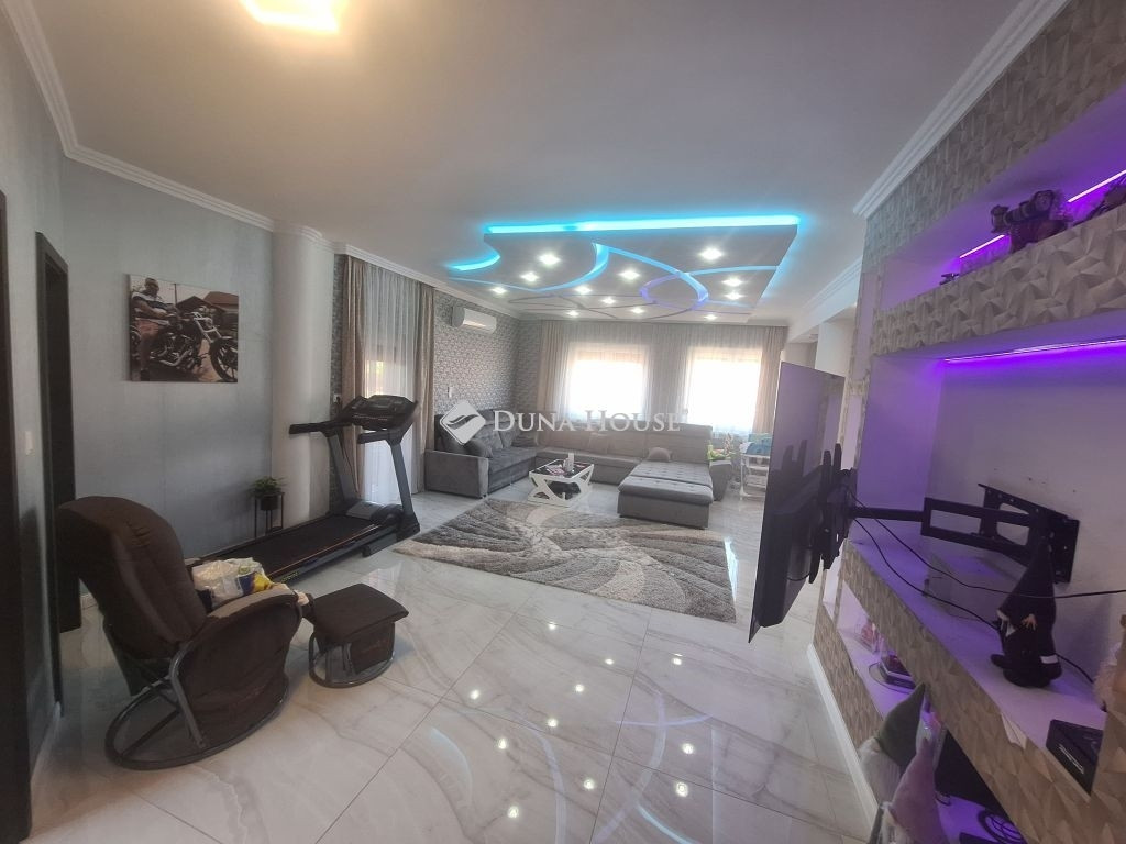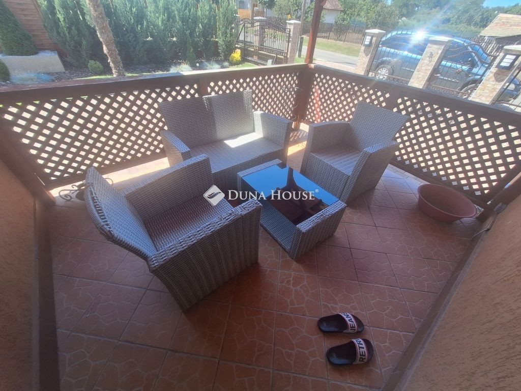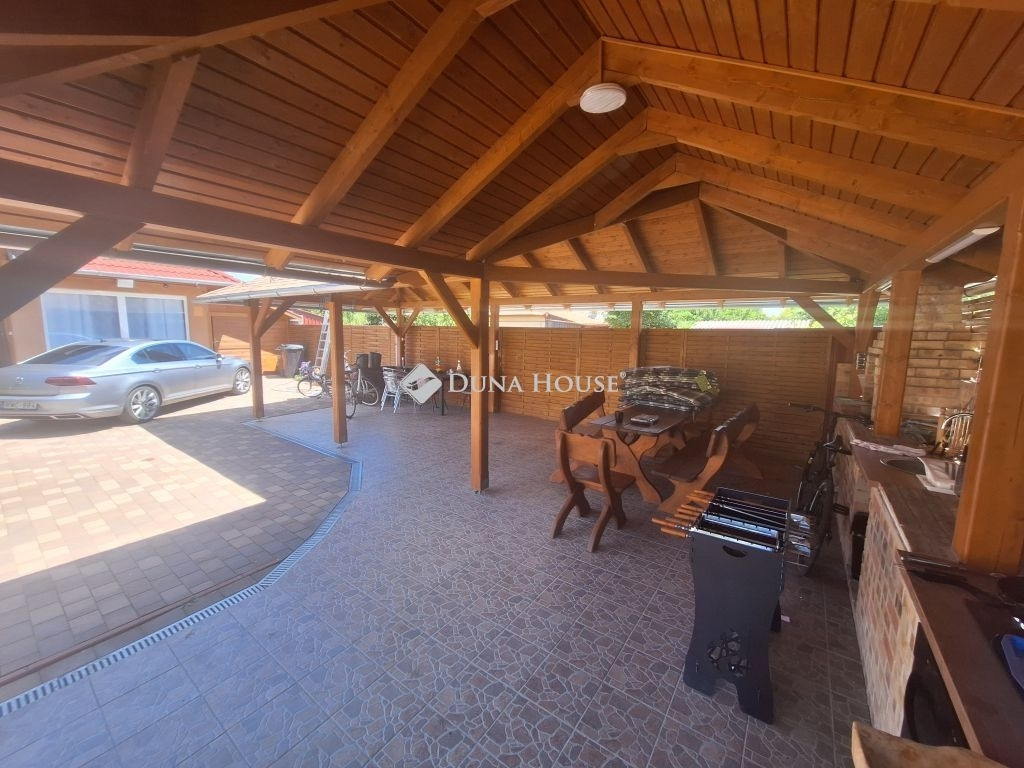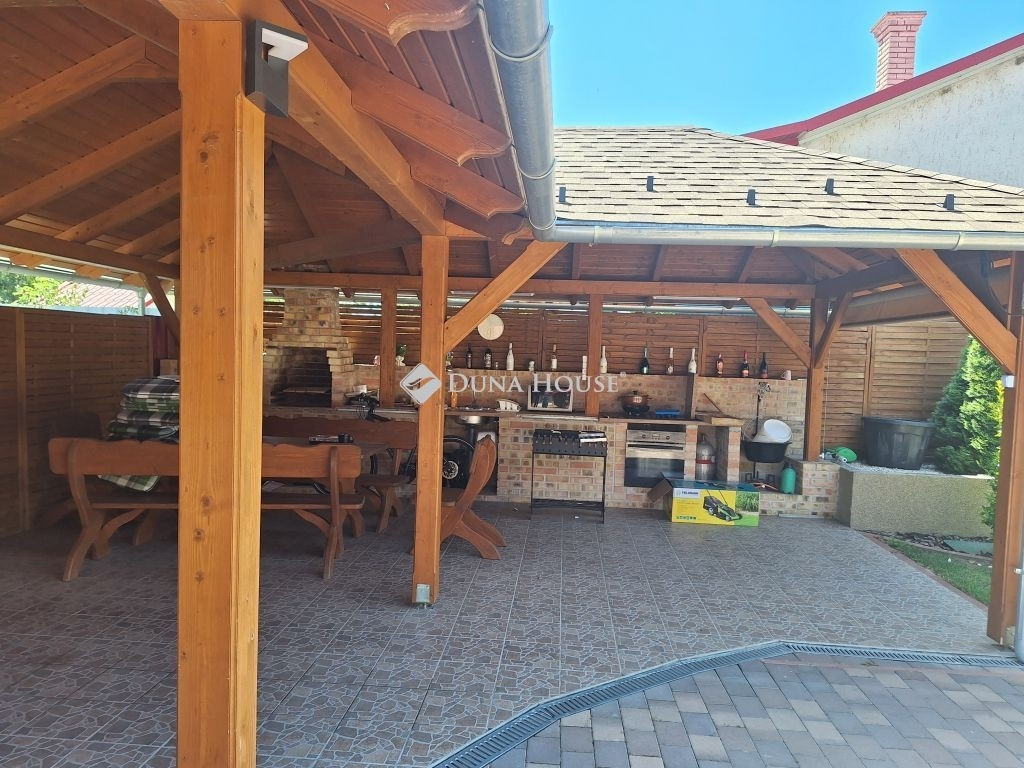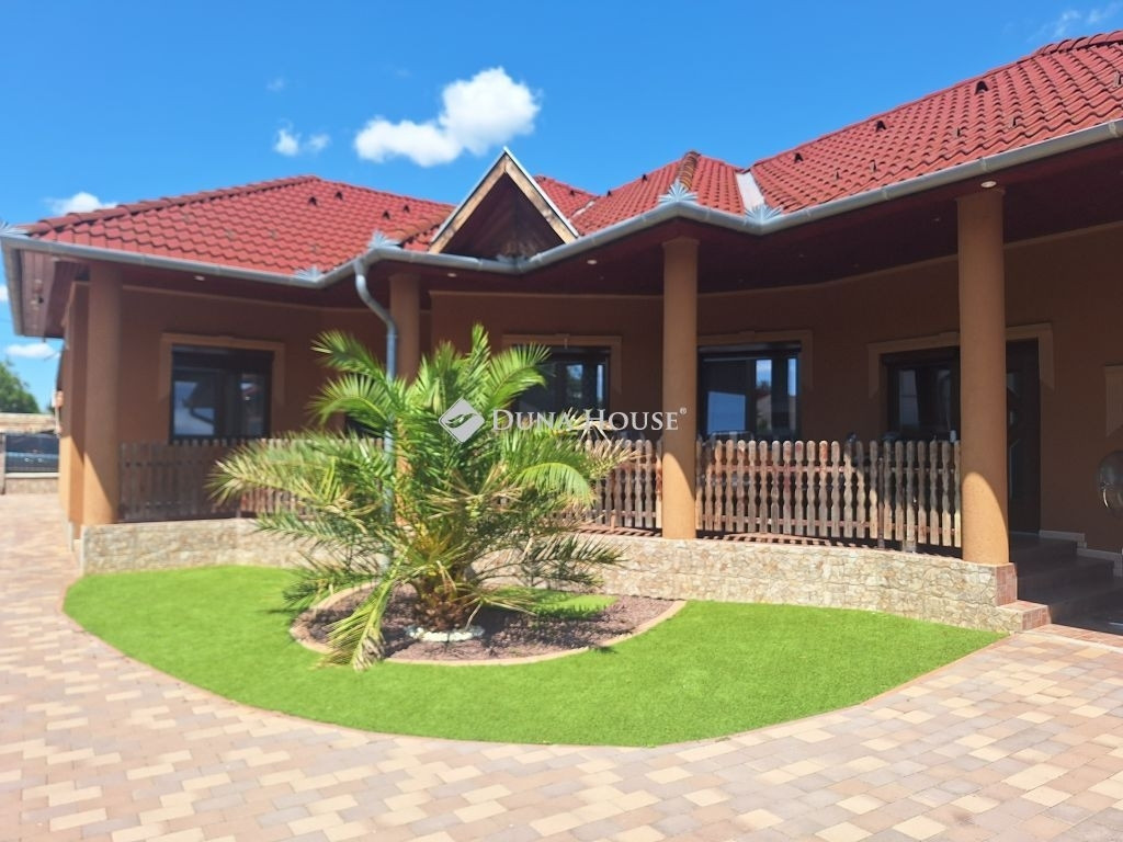 **Tiszaföldvári LUXUS családi ház ahol minden álmod valóra válik!**Eladó egy exkluzív, 1 szintes, minden igényt kielégítő luxus családi ház Tiszaföldváron. Ez nem csak egy ingatlan, hanem egy életérzés! Ha vágyik a kényelemre, a térre és a legmagasabb színvonalra, akkor megtalálta!A lakásban minden a tökéletesség :Óriási nappali lenyűgöző álmennyezettel, amely külön nyíló fedett terasszal összeköttetésben a napfény és a kényelem harmóniája.Modern konyha és étkező a gasztronómiai élmények és a családi összejövetelek ideális helyszíne.Generációsra alkalmas elrendezés: 2 külön szoba és egy nagy hálószoba gardróbbal garantálva a privát szférát és a kényelmet.Nagy méretű fürdőszoba káddal és tusolóval a pihentető fürdés és a frissítő zuhanyzás élménye.Külön, nagyobb méretű WC helyiség.Külön bejáratú mosókonyha, vendég wc-vel.Kényelmes méretű előszoba.Többféle fűtési lehetőség: gázcirkó és inverteres klíma.Az udvar: a pihenés és a szórakozás birodalma:Hatalmas, 29,5 m²-es fedett terasz tökéletes helyszín a családi ebédekre vagy a baráti koccintásokra.Külön, fedett terasz felszerelt kerti konyhával és grillezővel itt a grillparty mindig menő!Parkosított udvar a zöld övezet csendje és szépsége a mindennapok részévé válik.Több autó számára beállási lehetőség minden járművének kényelmesen helyet ad.**Extra lehetőségek:**!Üzlethelyiség! akár otthoni iroda, vagy saját vállalkozás indítására is lehetőség nyílik!Garázs - az autója biztonságban és védve.Ne hagyja ki ezt a ritka lehetőséget! Ez a ház nem csupán egy otthon, hanem egy életstílus, amelyben minden apró részlet a kényelemre és a szépségre összpontosít.Vegye fel a kapcsolatot még ma, és nézze meg ezt a gyöngyszemet!