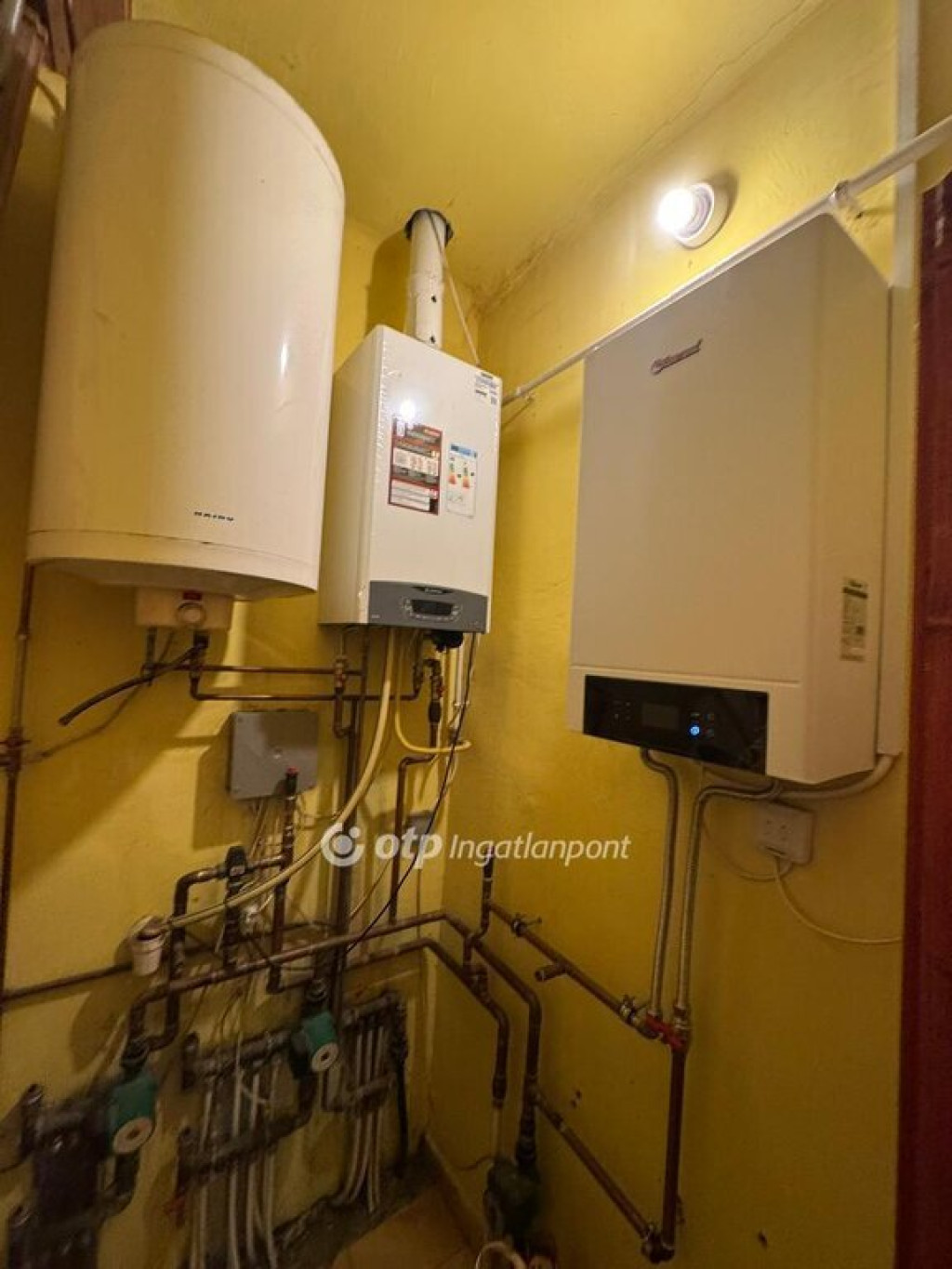Fűtés: gázkazán, vegyes tüzelésű kazán, elektromos kazán, részben radiátorokkal, részben padlófűtéssel, továbbá 1 db hűtő-fűtő klíma.
