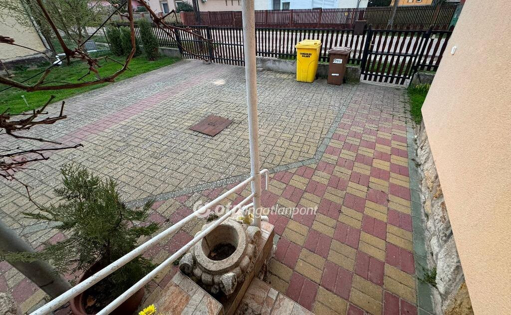 Az ingatlan udvara rendezett, körbekerített, részben térkővel burkolt, rajta melléképület, kerti csap, fúrt kút, 1 almafa, málna, szőlő.