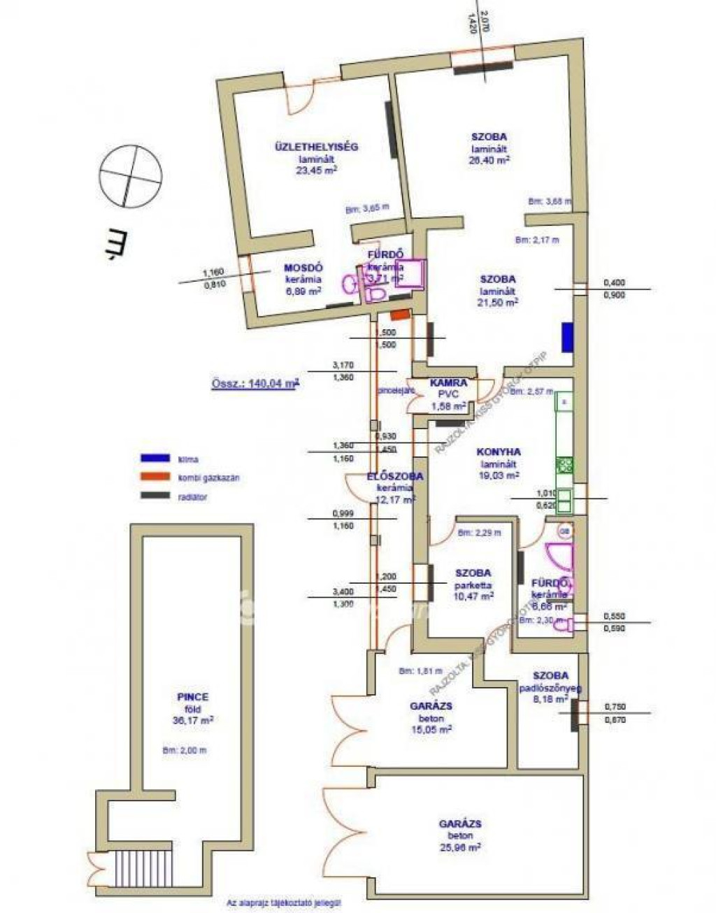 Fűtés: kombi gázkazán új lapradiátorokkal, hűtő-fűtő klíma.