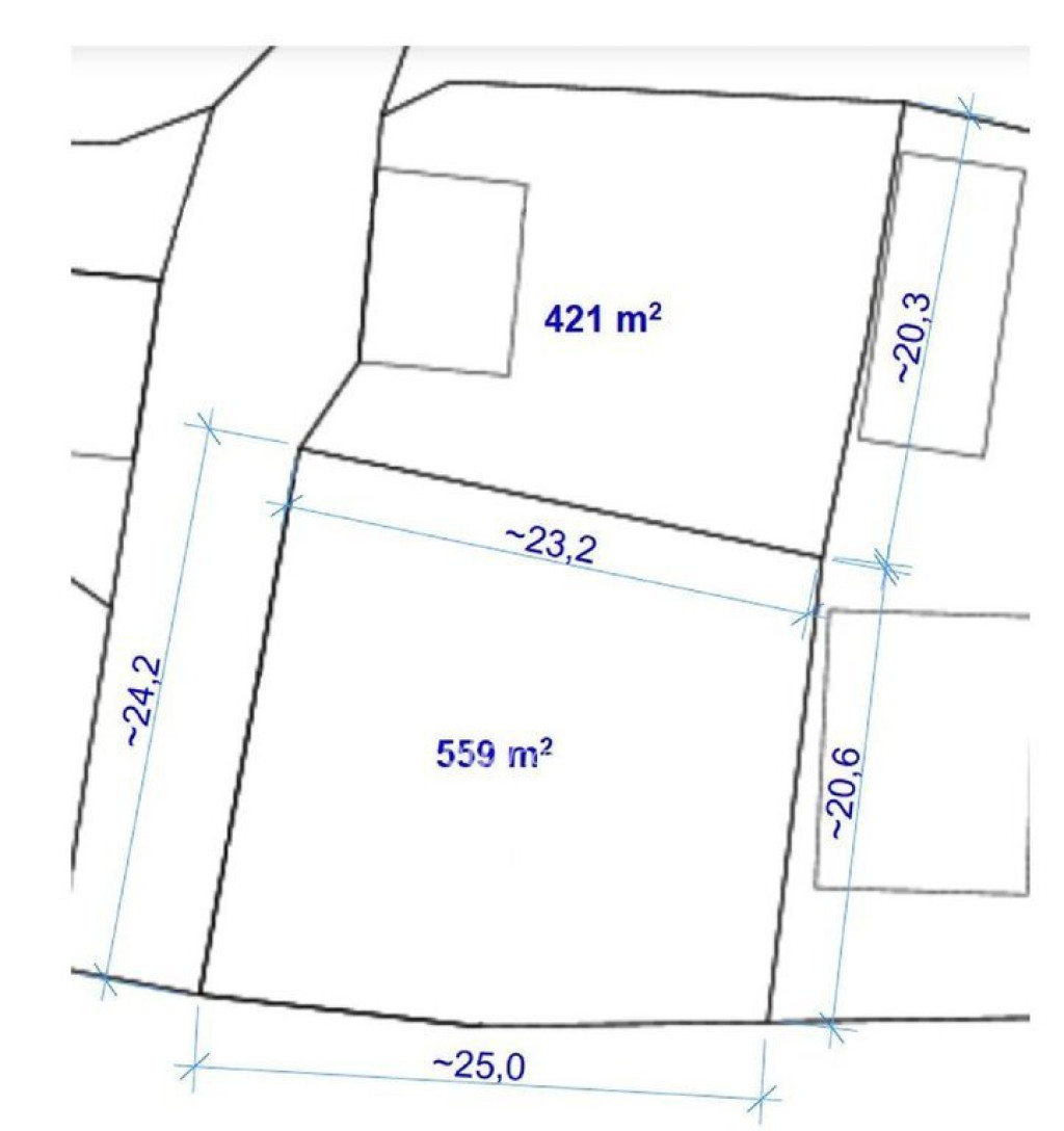 Telekterület: 980 m2 /egyik ingatlan 559 m2 (üres), a másik m2 (421 m2, házas)/.