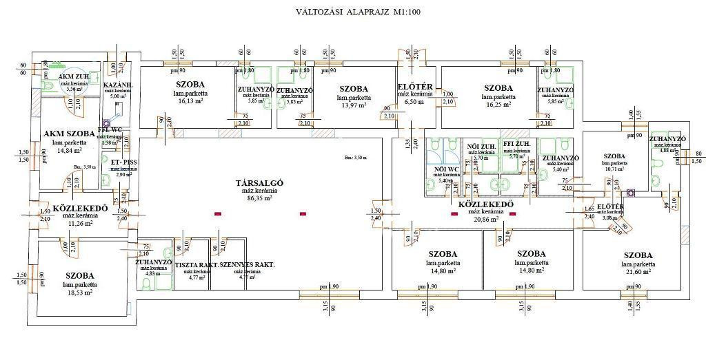 A nagyobb épület: 349,73 m2, hátul a lakóház: 76,54 m2+38,10 m2 fedett terasz. Építés éve kb. 1960, felújítva kb. 2002-ben teljeskörűen, de a főépület átalakítása jelenleg is folyamatban van apartmanházzá, a telek végében egy befejezett lakóház is található, nagy fedett terasszal (van egy külön bejáratos lakrész a lakóházon belül, külön fürdővel). Épület szerkezete tégla. Gépkocsi tárolásra az udvarban lévő kb. 15 m2-es fedett gépkocsibeállóban van lehetőség, illetve az épület előtt saját területen és közterületen is. Az épületekben a legtöbb helyen műanyag nyílászárók, egyik blokkban klíma is, főépületben riasztó, 3 fázis (3x32A). Az udvara rendezett, nagyrészt térköves.