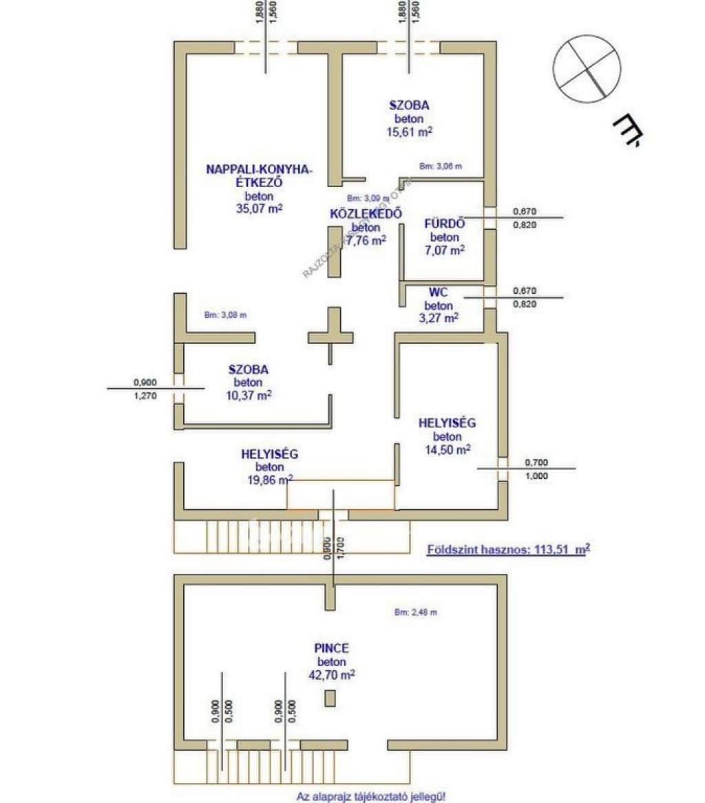 Telekméret: 1303 m2.