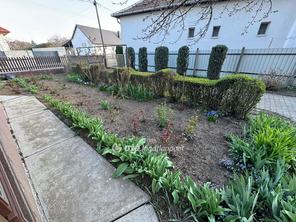 Az ingatlan udvara rendezett, rajta külön épületben garázs, melléképület, gyümölcsfák (cseresznye, alma, meggy, szilva), fúrt kút, kerti csap.