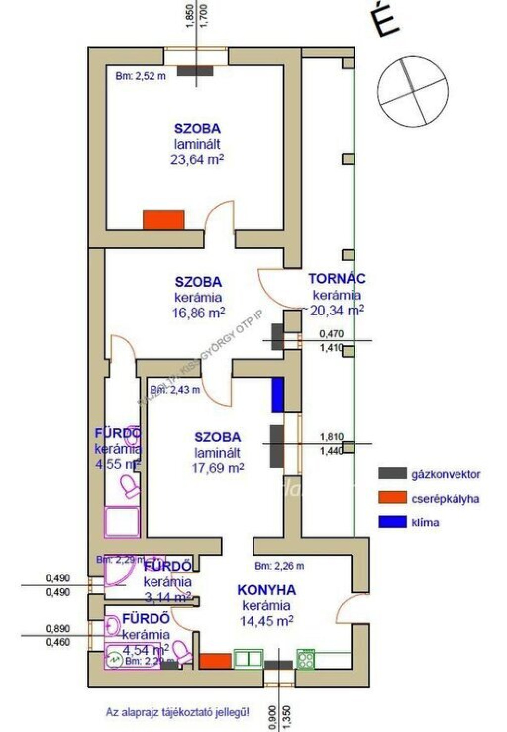 Fűtés: gázkonvektor, cserépkályha (2 db), fűtő-hűtő klíma.