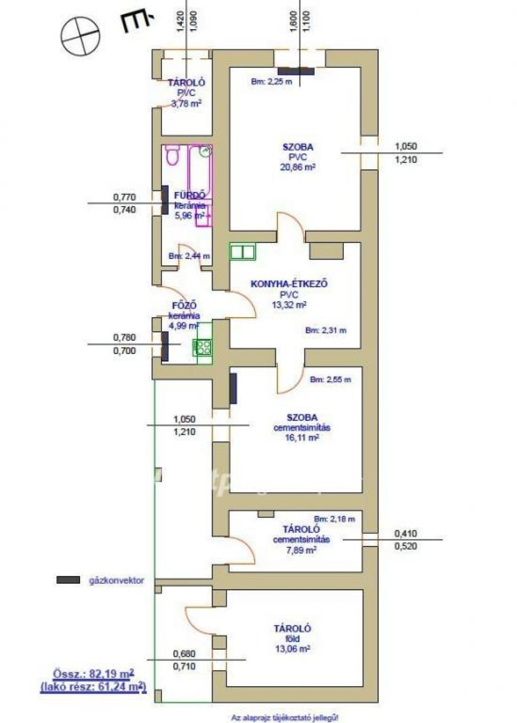 Fűtés: gázkonvektor.