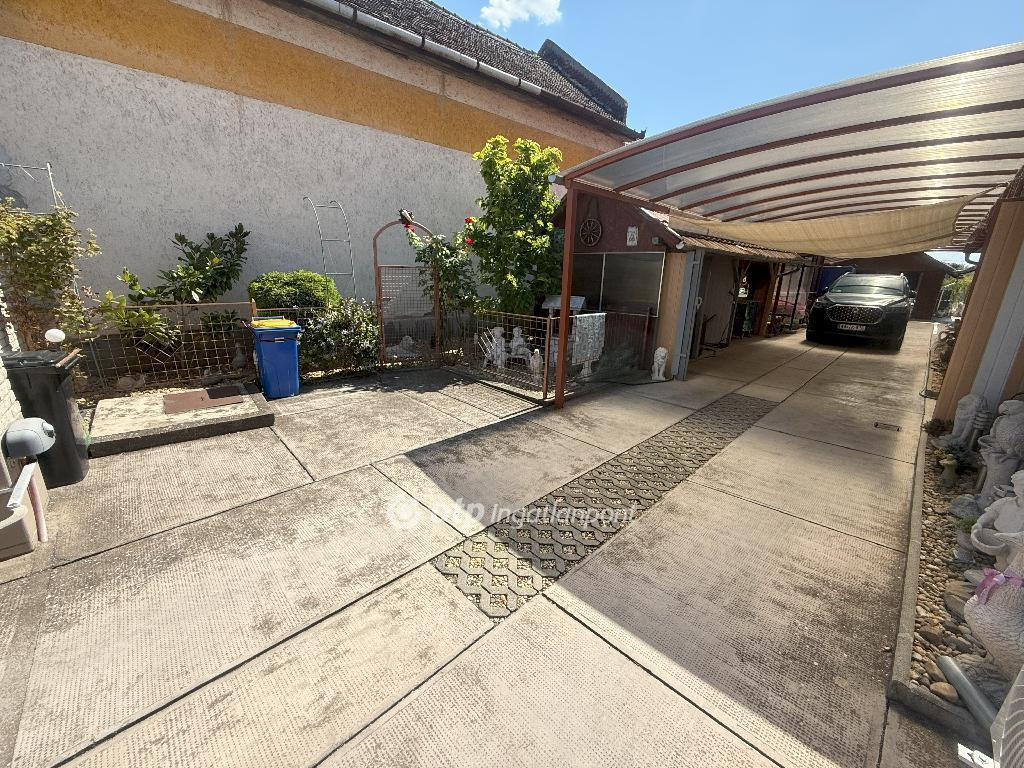 előkert betonozott, teljes fedést kapott polikarbonáttal, így 3 autó is kényelmesen elfér, plusz egy egyszemélyes garázs is található.