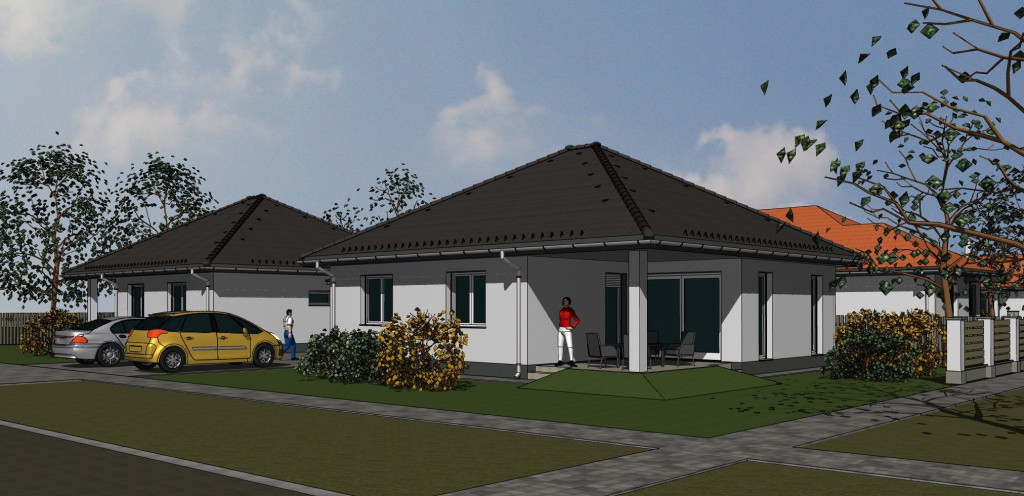 Tiszakécske új építésű, kedvelt zöldövezeti részén 2026. év végi átadással az alábbi paraméterekkel rendelkező, összkomfortos ikerház ELADÓ:400 m2-es ideális méretű önálló telken épülő ház 85 m2 hasznos alapterületén nappali+2 hálószoba, konyha, étkező, fürdőszoba, toilett, előszoba és közlekedő kerül kialakításra.Az ikerháznak nincs közös fala a szomszédos házzal, csak a kocsibeállókkal kapcsolatosak. Műszaki tartalom tekintetében vasbeton sávalap, 30 cm-es pórusbeton falazóelem, vasalt betonkoszorú kialakítású. A külső homlokzat fehér nemesvakolat borítást kap. A gomba és rágcsáló elleni védelemmel ellátott, ácsolt tetőszerkezetre betoncserép héjazat kerül színes ereszcsatornával.A födém fogópárra függesztett gipszkarton párazáró fóliával kivitelezésű. A nyílászárók 3 rétegű üvegezést kapnak, redőnnyel és szúnyoghálóval ellátottak lesznek.A belső ajtók kiváló minőségű CPL dekor ajtók, átfogó tokkal. Az épületben a szobák helyiségei laminált melegburkolattal, míg a többi helyiség járólap borítással rendelkezik majd. Hőszigetelés tekintetében az aljat 12 cm, a homlokzat 15 cm (EPS80), míg a födém 25 cm kőzetgyapot lesz. A fűtés hőszivattyú segítségével padlófütés hőleadással történik.A melegvíz ellátás 200 literes HMV tartály hőszivattyúval, de igény szerint 300 literes is választható. Az ingatlan vizes helységei, a konyha és az étkező kiváló minőségű fal-és aljzatburkolattal ellátottak lesznek.Elektromos felszereltség: helyiségenként mennyezeti lámpa, 5-6 dugalj, kapcsoló, internet és TV kiállások. Az ingatlan átadása 2026 végi! Finanszírozással ( támogatott hitelek, CSOK+, babaváró, stb.) , illetve egyéb információval kapcsolatban várjuk hívását!