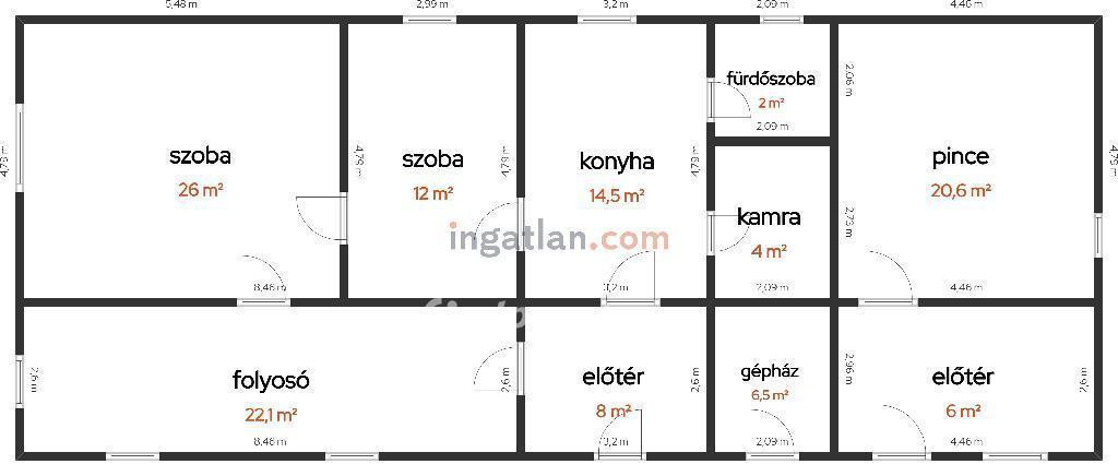 Melléképület alapterülete: 46 nm