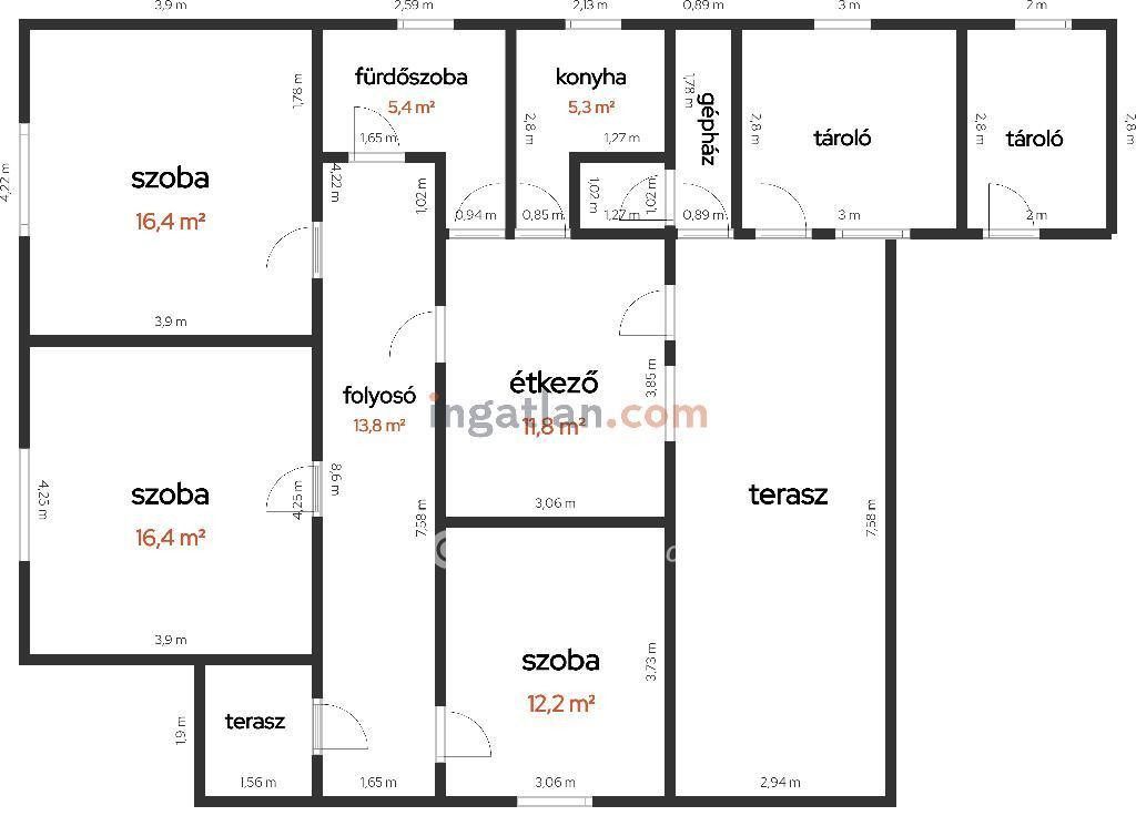 Hasznos alapterülete 81,3 nm, a telek mérete 800 nm, az építés éve 1975. Tégla építésű, a tető jó állapotban van. Fűtése gázkazánnal megoldott radiátoros hőleadással. tartozik hozzá 3 kényelmes szoba, étkezős konyha, fürdőszoba és WC egy légtérben, közlekedő, gépház, tárolók.