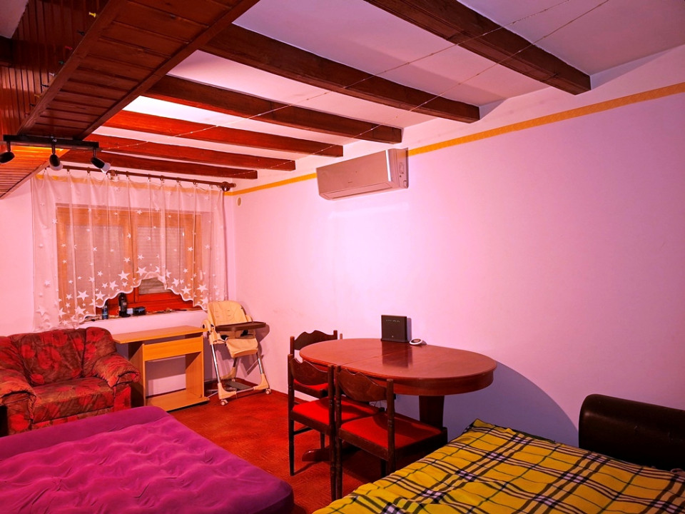 A vegyes falazatú házban a központi fűtés (mobilról vezérelhető) gázcirkó kazánról, radiátor hőleadókkal működik. A hűtő-fűtő klímához H-tarifa adott. A melegvizet 60 literes gázbojler biztosítja,