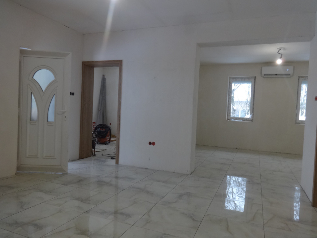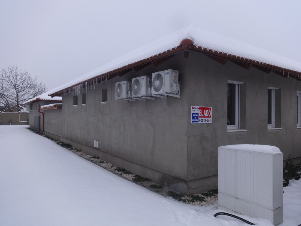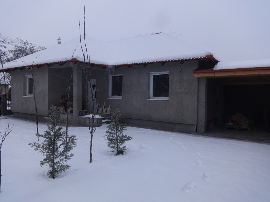 A hamarosan befejezésre kerülő családi ház B30-as falazóblokkból épült, 15 cm-es nikecell homlokzati szigeteléssel ellátott. A födém 25-es kőzetgyapot szigeteléssel készült, az alap vasbeton sávalap, 30 cm-es pórusbeton falazóelem vasalt betonkoszorú kialakítással! Az ácsolt tetőszerkezetre ( rágcsáló és gomba elleni védelemmel ellátva)betoncserép kerül, esztétikus ereszcsatornával. A műanyag nyílászárók 3 rétegű üveggel, szúnyoghálóval és redőnnyel felszereltek. A helyiségek trendi kerámia lap burkolatot kaptak, míg a hálószobákba kiváló minőségű laminált padlóburkolatot tettek.A fűtést és melegvíz ellátást hőszivattyú biztosítja, előbbi padlófűtés, míg az utóbbi 200 literes HMV tartály segítségével.Igény esetén akár 300 literes is beszerelhető. Természetesen fűtő-hűtő klímák (3db) is rendelkezésre állnak! Elektromosság tekintetében helyiségenként 5 dugalj kerül kiállásra.