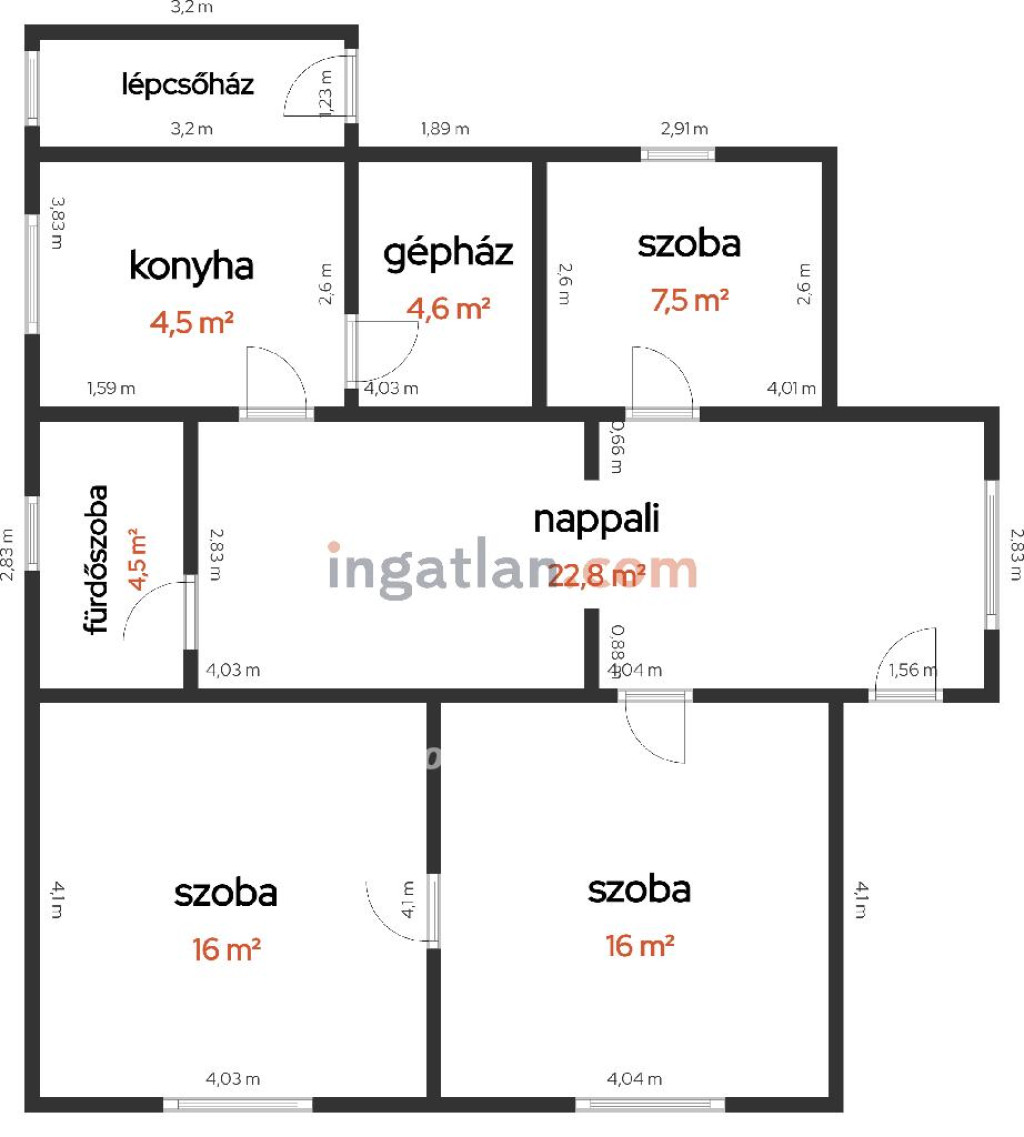Az ingatlan hasznos alapterülete 79,7 nm, melyben 3 szoba, nappali, konyha és fürdőszoba került kialakításra. Az épület körülbelül 80%-a jó állapotú, statikailag stabil és jól használható, ugyanakkor a ház egy része a korábbi tetősérülés következtében beázott, a vályogfal megrogyott, így ez a szakasz bontást vagy újjáépítést igényel.