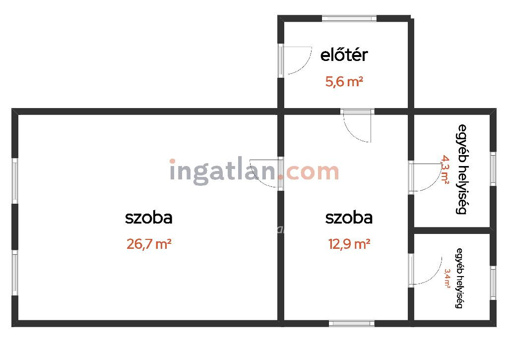 Helyiségek: 1 szoba, előszoba, 2 különálló helyiség (melyekből fürdőszoba és konyha kialakítható), előtér
