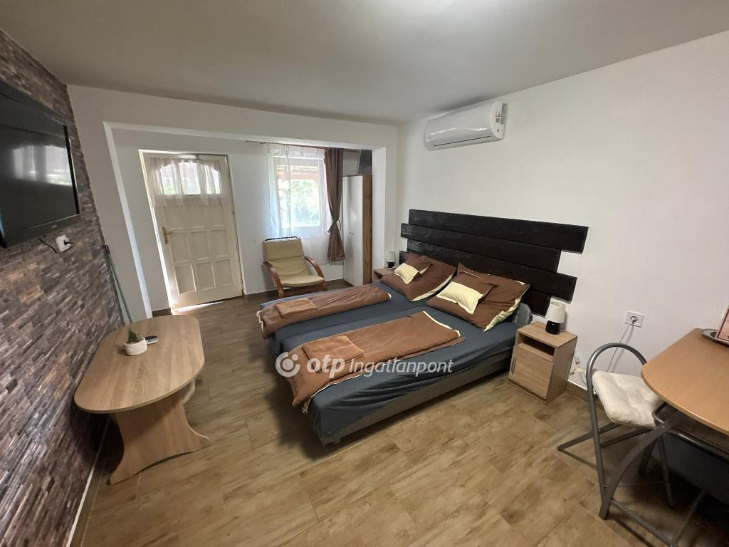 A TISZA-TAVI TISZANÁNÁN A KÖZPONTHOZ KÖZEL ELADÓ EGY KÍVÜL-BELÜL - A HAGYOMÁNYOS NÉPI STÍLUS MEGTARTÁSÁVAL ÉS ANYAGHASZNÁLATTAL - IGÉNYESEN FELÚJÍTOTT, VENDÉGHÁZKÉNT MŰKÖDŐ, 105,31 M2 HASZNOS ALAPTERÜLETŰ, 4 SZOBÁS, 4 FÜRDŐSZOBÁS, KLIMATIZÁLT, TORNÁCOS CSALÁDI HÁZ, TELJES BERENDEZÉSSEL, DINNYÉSHÁTTÓL ÉS A TISZA-TÓTÓL 6 KM-RE!!! A bejáratott, minősített 10 férőhelyes, háromegységes vendégház 2004 óta folyamatosan működik, az egységek önállóan használhatók, mindegyiknek saját fürdője, konyhája, plusz egy 4. önálló fürdőszoba is tartozik a házhoz! Az épület első része kb. 1863-ban épült, falazata vályog, hátsó rész kb. 2004-ben épült B30-as téglából, födém elöl saralt fagerendás, hátul fagerendás hőszigetelve, tetőn cserépfedés. A népi stílusú első rész a legnagyobb lakóegység, a két hátsó rész, kisebb és modernebb. Elvégzett felújítások: ~2004-ben aláfalazás 2 oldalról (a bővítés is ekkor történt), 2019-ben villanyvezeték, víz-, szennyvízvezeték cseréje, 2 hátsó apartmanban burkolatcsere, 2 új fürdő kialakítás.