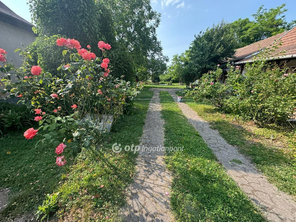 Az udvara körbekerített, rendezett, parkosított, rajta gyümölcsfák (cseresznye, meggy, dió), fúrt kút, kerti csap, kerti bográcsozó.