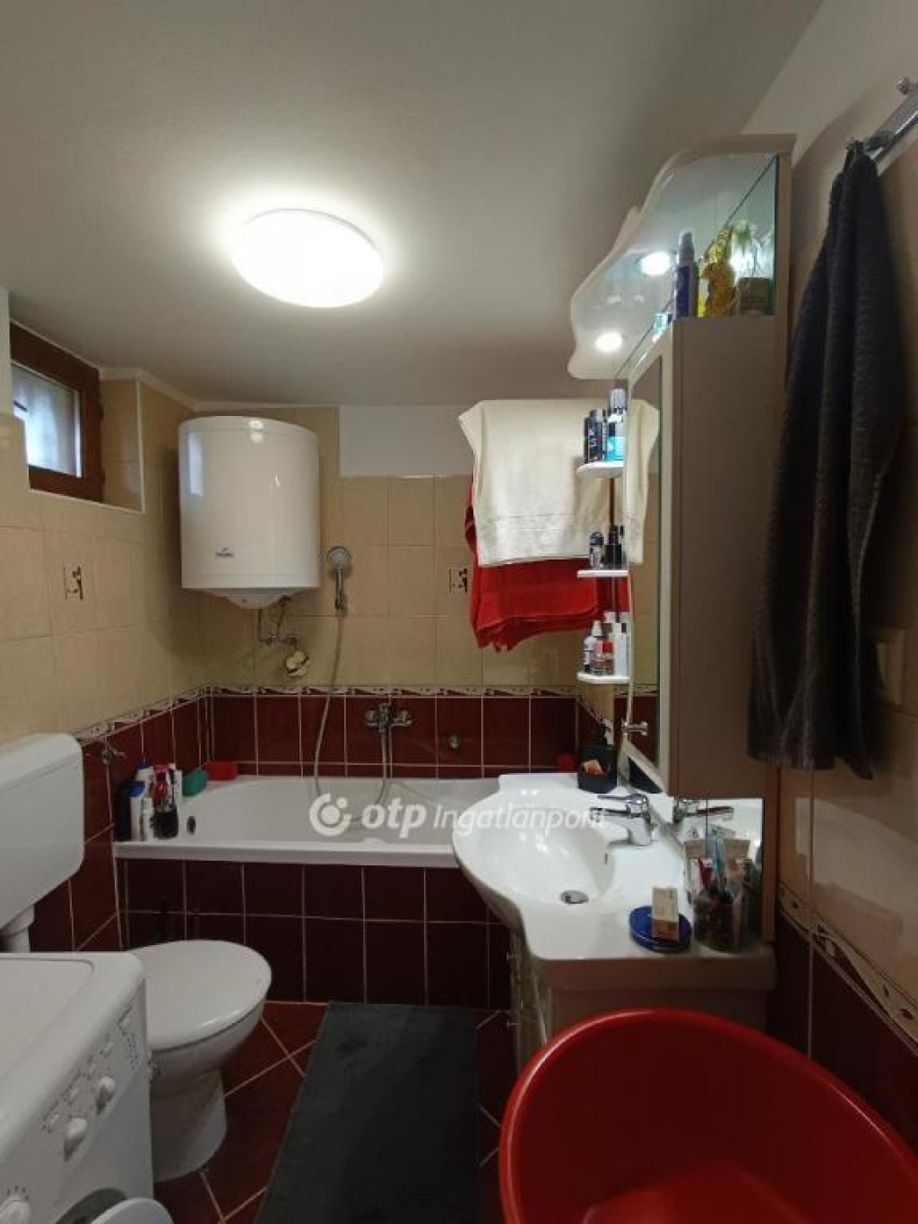 Fürdőszobában villanybojler biztosítja a melegvizet. A melléképületben több kisebb helyiség, tároló lett kialakítva, amelyben WC is található.