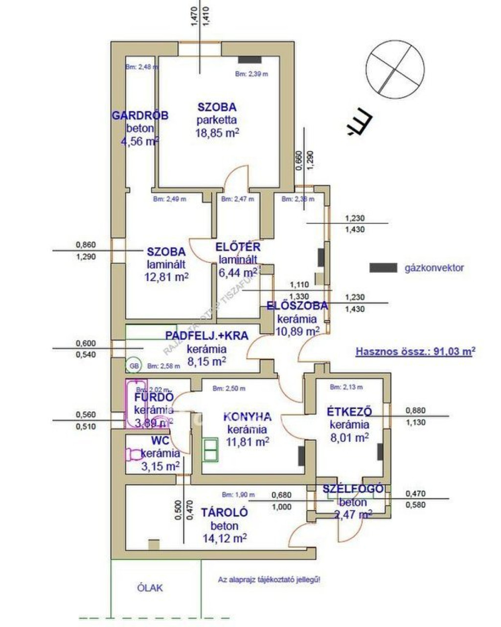 Fűtés: gázkonvektor.