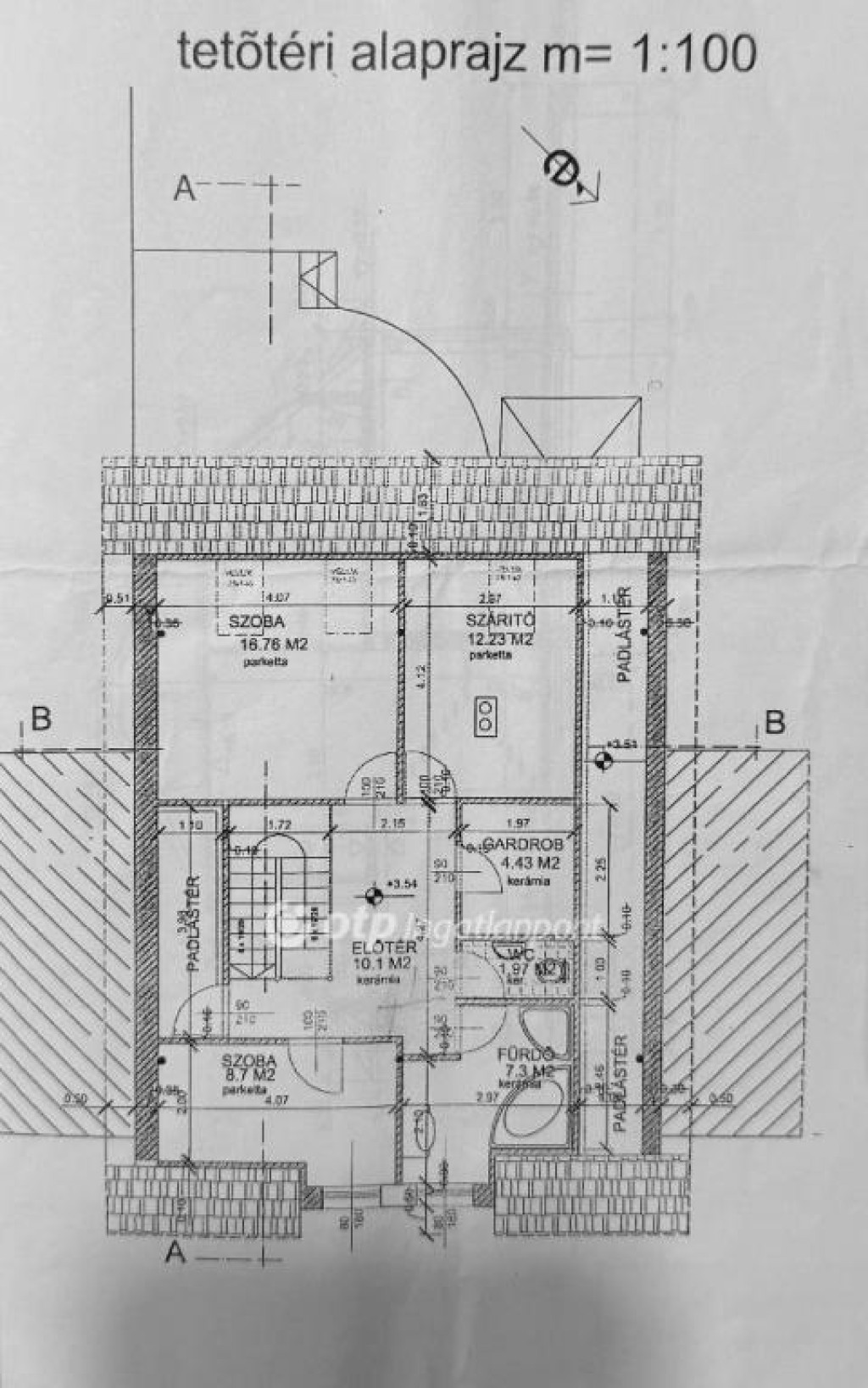 Az emelet szintén jól átgondolt, élhető tereket kínál. Itt négy szobát alakítottak ki, melyek közül kettő teljes értékű, kényelmes méretű hálóként funkcionál, míg két kisebb szoba kiváló lehetőség dolgozószoba, gyerekszoba vagy hobbitér kialakítására. A terek laminált parkettával burkoltak, a szobák tájolása miatt pedig kellemesen világosak. A szinten található egy különálló gardróbhelyiség, amely nagyban hozzájárul a rendezettséghez. A fürdőszoba és a külön WC praktikus elhelyezése biztosítja a család zavartalan reggeli készülődését.