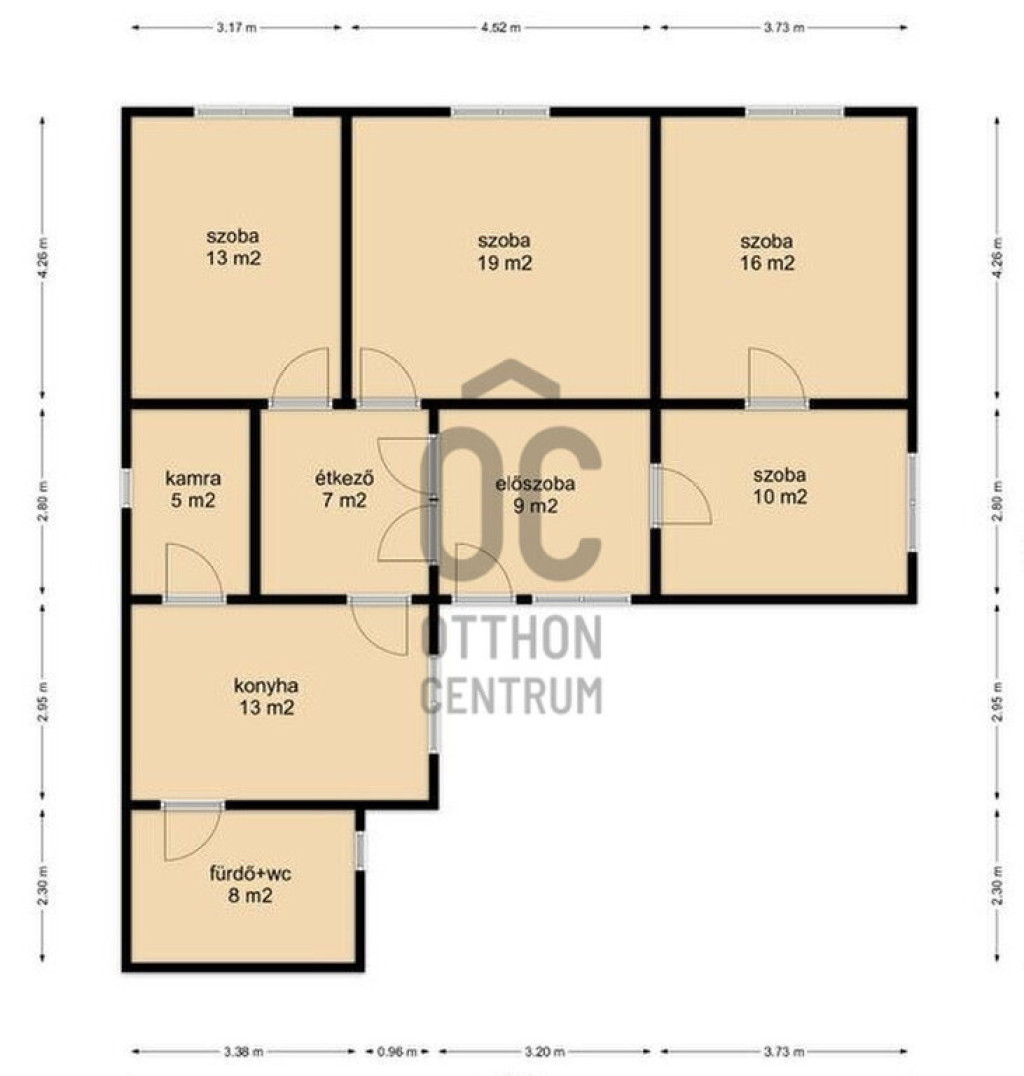 Az ingatlan 4 szoba, konyha, étkező, előszoba, kamra, fürdő + WC helyiségekkel rendelkezik.