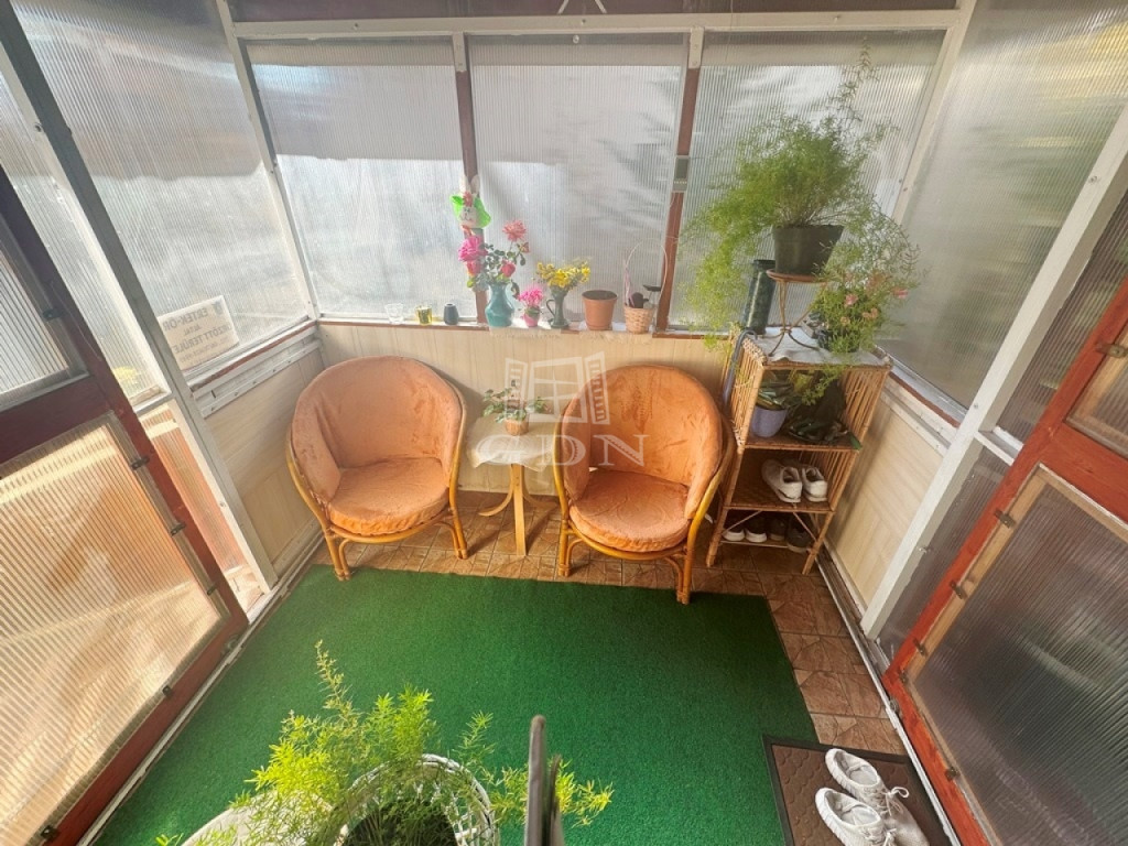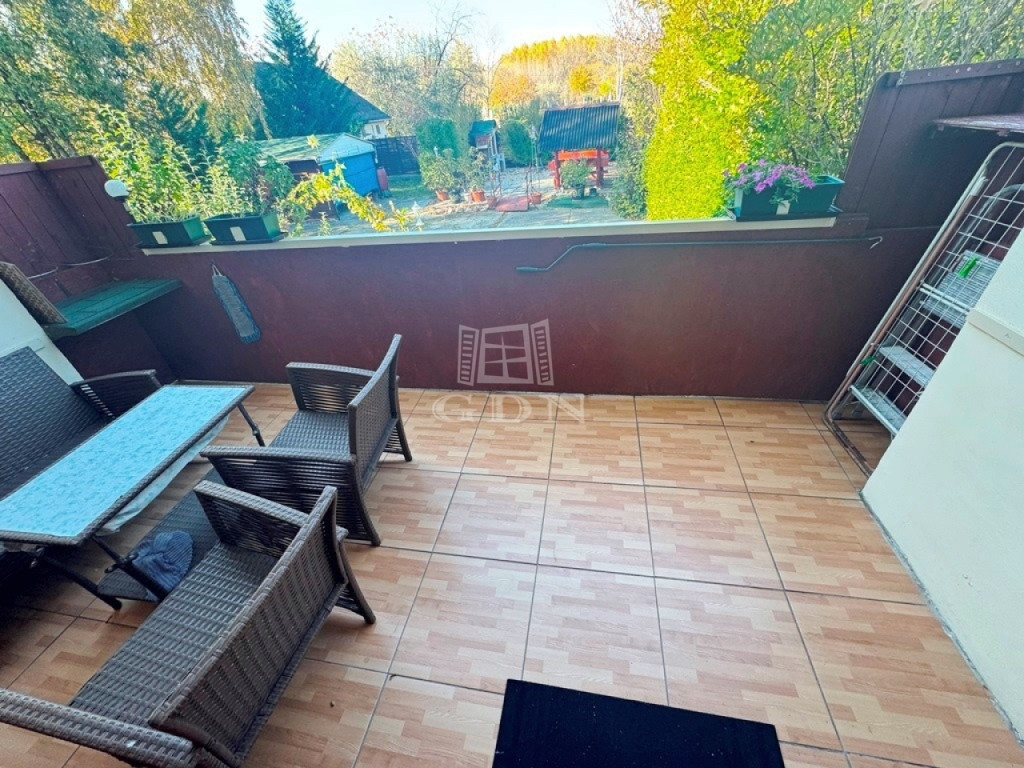 Az ingatlanhoz tartozik egy 5 négyzetméteres erkély és egy 8 négyzetméteres terasz.