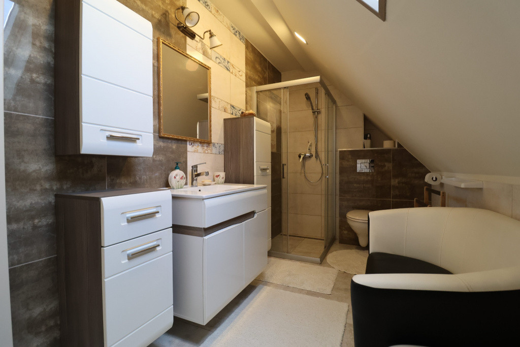 • Tetőtéri fürdőszoba kibővítése és teljes felújítása