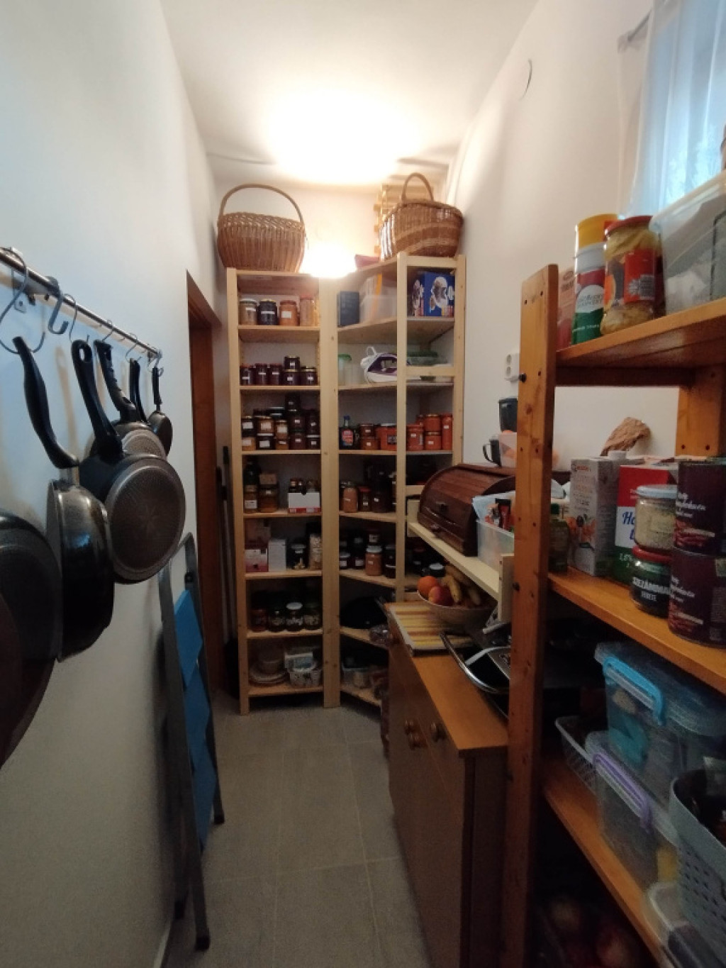 A szuterén ahová autóval is könnyen be lehet parkolni viakolor burkolatú lehajtón, motoros, hőszigetelt garázskapun keresztül közelíthető meg, de a kert felől is van egy gyalogos bejárata. Több helységből áll, akár konditermet, vagy játszó szobát is könnyen kialakíthat az új tulajdonos.