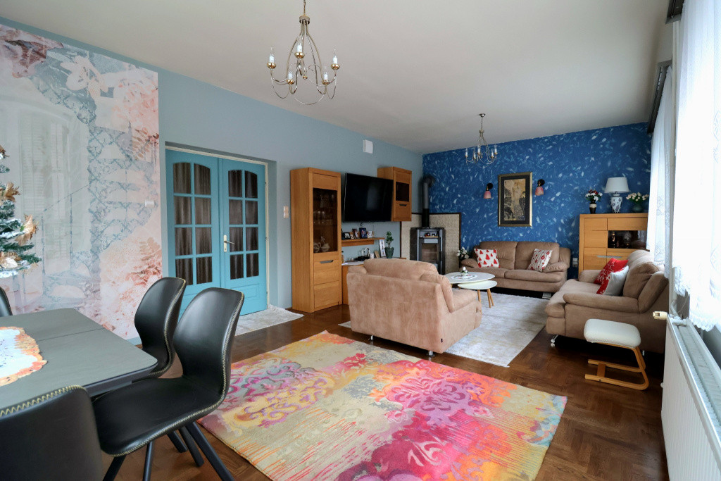 • Nappaliban 8 kW-os gránitburkolatos kandallókályha, amely a teljes földszint befűtésére alkalmas