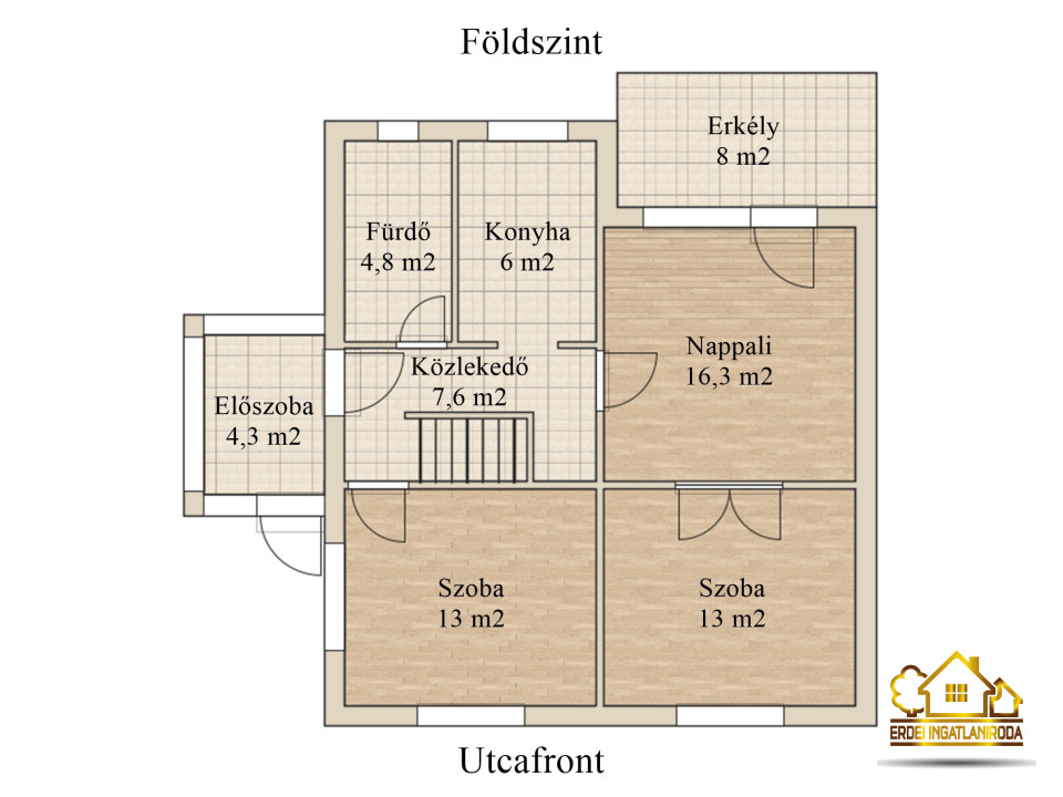 - Elrendezés: Nappali + 2 hálószoba, konyha, fürdő, előszoba és egy hangulatos, 8 m²-es erkély.