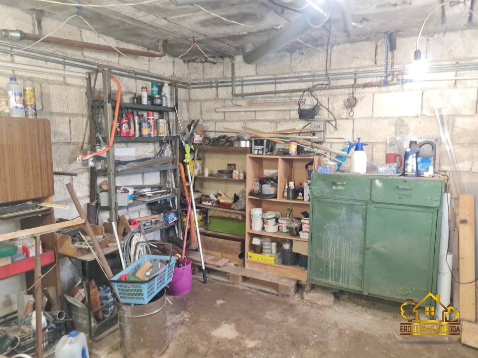 - A szuterénben egy 20 m²-es garázs és egy 13 m²-es tároló kapott helyet, a kertben pedig egy 30 m²-es melléképület található, mely ideális lehet kerti eszközök tárolására.