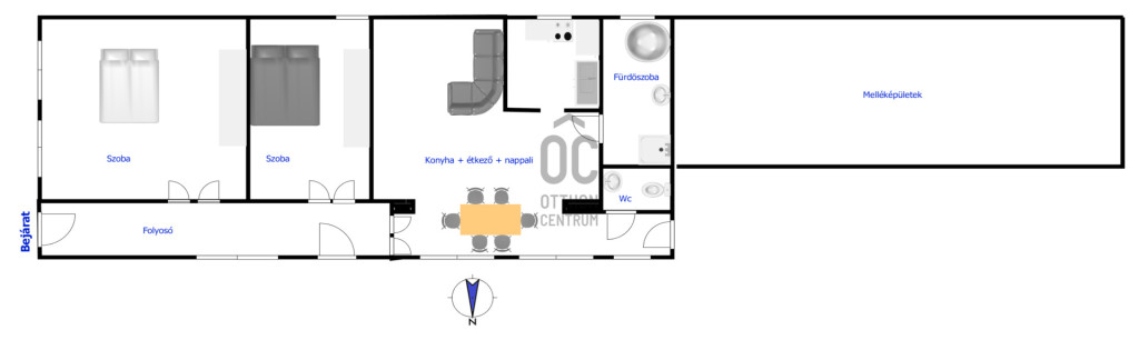 - zárt folyosó, 2 szoba, nappali-konyha-étkező, fürdőszoba, külön wc található benne
