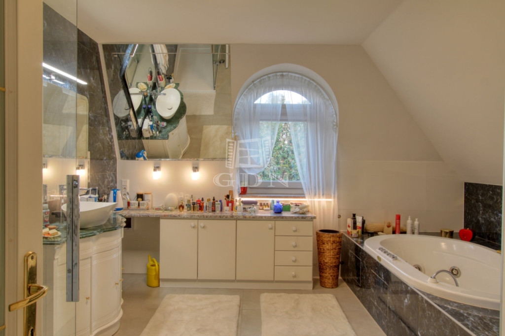 4882. Törökbálint legszebb kertvárosi övezetében a Tükörhegyen, kétlakásos, impozáns enteriőrrel rendelkező, galériás, kiváló állapotú, 7 szobás, riasztóval szerelt, délnyugati fekvésű családi ház garázzsal, hőszivattyús fűtött medencével, parkosított 871 m2-es telken eladó.