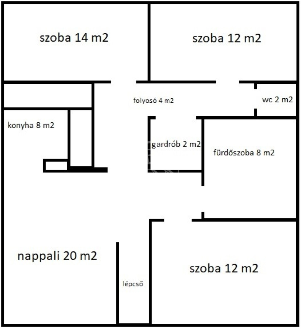 Helyiségek: előtér, nappali, fürdő, WC, konyha-étkező, folyosó, 2 szoba, 1 előszoba, 1 erkély
