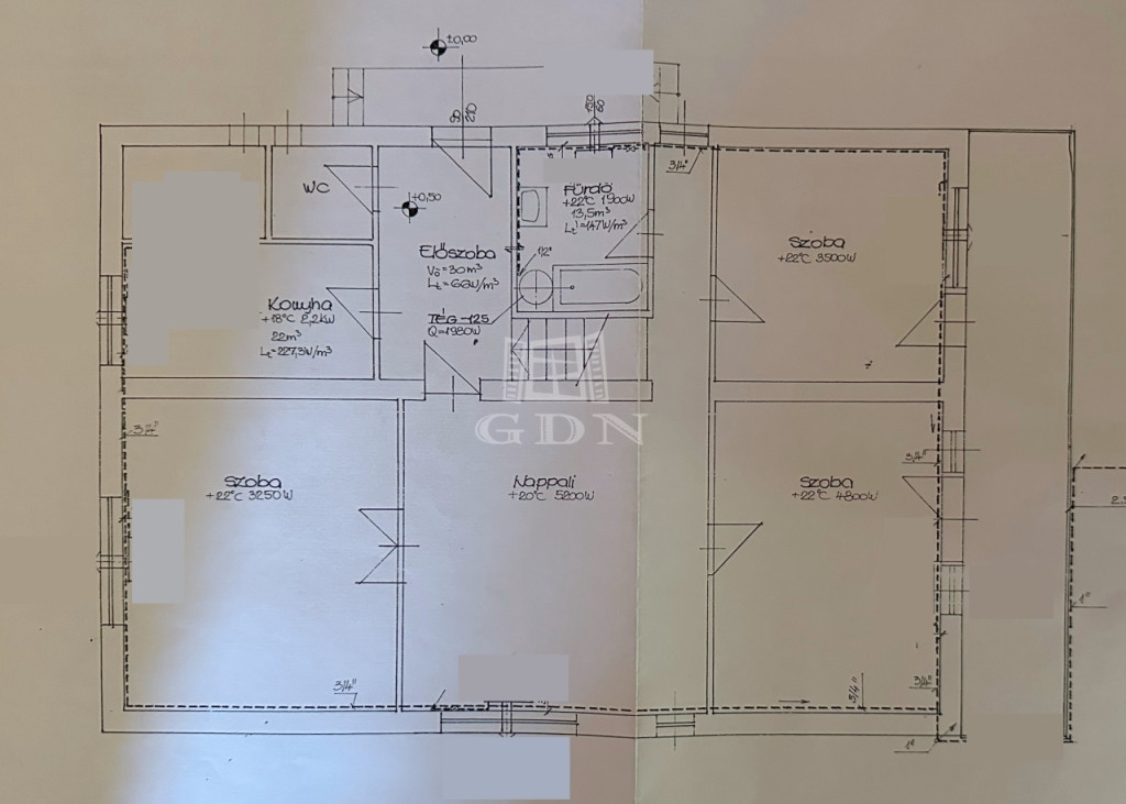 Helyiségek: fürdő/WC, WC, amerikai konyha-nappali-étkező, 1 + 2 fél szoba, gardrób