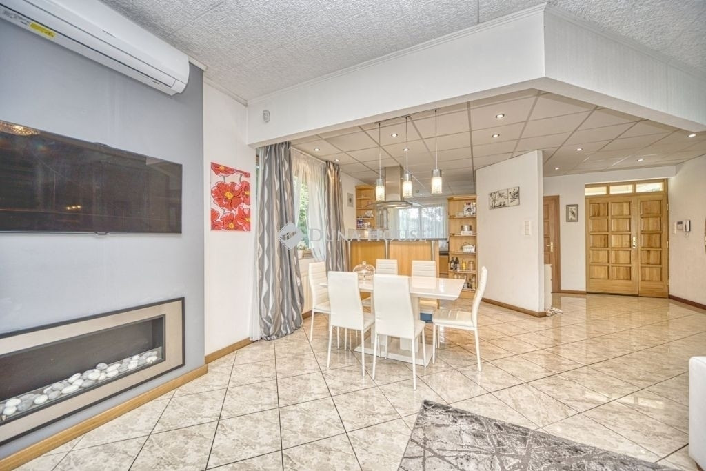 -Földszint: a ház szíve egy kb. 60 m²-es napfényes nappaliétkezőkonyha egység közvetlen teraszos-kertkapcsolattal; hangulatról a bioetanol kandalló gondoskodik. További helyiségek: szülői háló, fürdőszoba WC-vel, dolgozószoba, vendégszoba saját zuhanyzóval és WC-vel.
