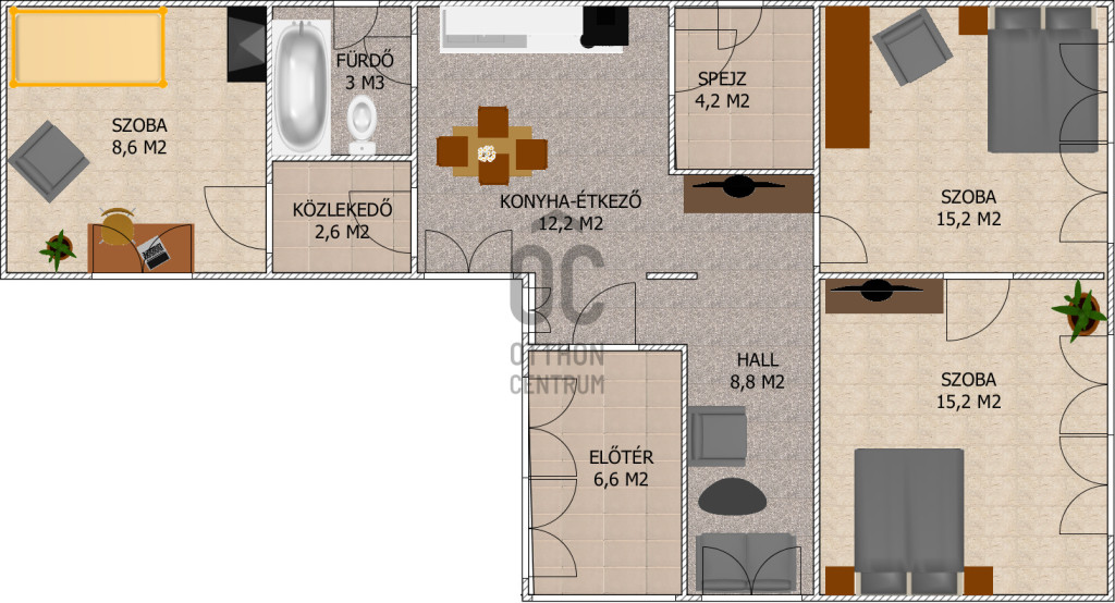 -3 SZOBA+KONYHAÉTKEZŐ+FÜRDŐ-WC ÉS HALL KIALAKÍTÁSÚ.
