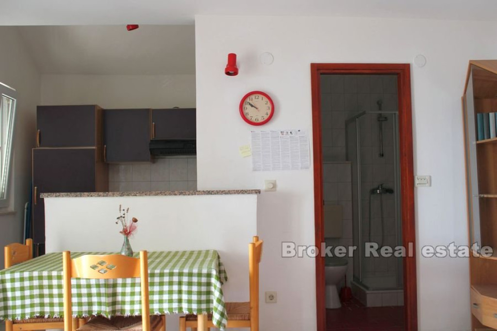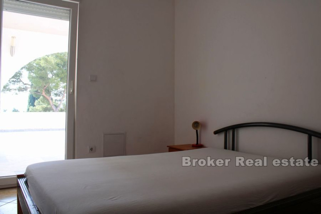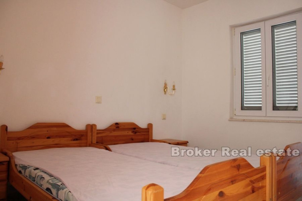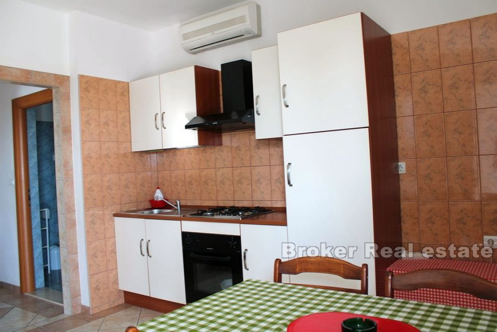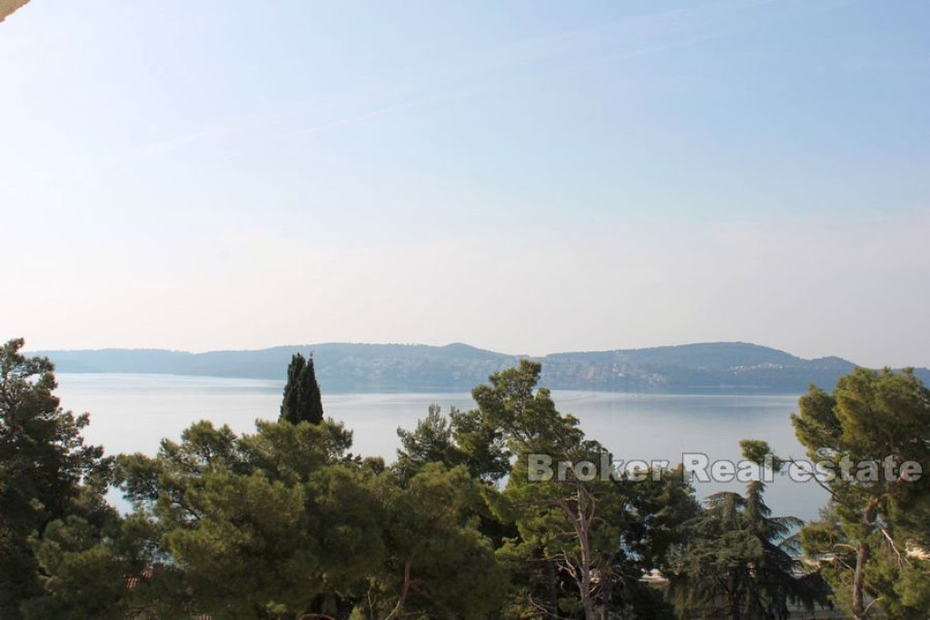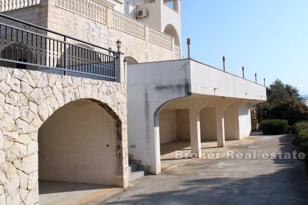 Beautiful house only 50 m from the sea near Trogir with a beautiful sea view. The property is surrounded by beautiful Mediterranean nature and is an ideal place for rest and relaxation. The house consists of 3 floors with a living area of 608 m2 and 810 m2 of land. On the first floor there are 2 apartments consisting of 2 bedrooms, bathroom, kitchen, large terrace, living room and dining room. The 2nd floor consists of two apartments consisting of 1 bedroom, bathroom, large terrace, living room with kitchen and dining area. . The 3rd floor consists of two apartments consisting of 1 bedroom, bathroom, balcony, living room with kitchen and dining area. The terrace offers a beautiful view of the sea and islands. The property is equipped with central heating, garage and air conditioning. The house is located near all necessary facilities such as restaurants, cafe bars, grocery stores, beaches. The property is located on a plot of 608 m2 and has 4 garages and the possibility of setting up a swimming pool. On the first floor there is a large storage space. The property has a well-established business of renting apartments for tourist purposes. Since the property is located near Trogir, it can be a pleasant place for family life. BROKER REFERENCE ID:2031/36