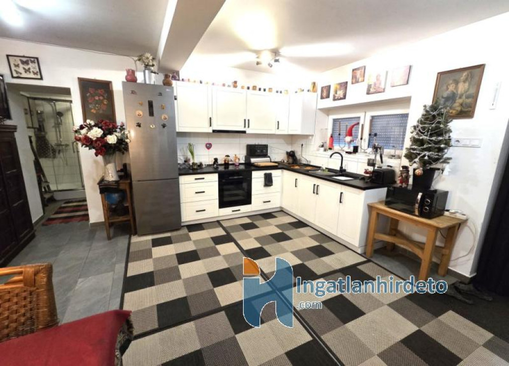 Elhelyezkedése: Belterület Tájolása: Déli tájolású Állapota: Használt - felújított Komfort besorolása: összkomfortos Építési éve: 1950 Alapterülete: 150 m2 Telekterülete: 6 165 m2 Szobák száma: 4szoba Felújított: Felújított Felújítás éve: 2004 Felújítás során elvégzett munkák: Festés, Villanyrendszer csere, Vízrendszer csere, Fűtésrendszer csere, Csempe csere, Járólap csere, Parketta csere, Fűrdőszobai szaniterek cseréje, Belső átépítés, Tetőfelújítás, Új külső vakolat, Nyílászárók cseréje, Hőszigetelt nyílászárók beépítése, Redőnycsere Közművek: Gáz, Víz, Villany, Csatorna Gázellátás: Vezetékes Vízellátás: Vezetékes víz Melegvíz-ellátás: Villanybojler Áramellátás: 230V Fűtés módja: Gáz, Fa Fűtés típusa: Konvektoros, Kandalló Homlokzat állapot: Jó Építési mód: Tégla Tető formája: Magas Tető anyaga: Cserép Parkolási lehetőség: Telken Kilátás: Utcafronti kilátás, Udvari kilátás Jellemzői: Csendes környék, Jó közlekedés, Két bejárat, Redőny, Udvari terasz, Beépített konyhabútor, Kert, Kerítés, Zöldterület Energetikai besorolás: G Egyéb jellemzők: Terasz, Melléképület Tv, Internet: Kábeltévé, Internet, Vezetékes telefon Közelben: Iskola, Óvoda, Orvosi rendelő, Bolt, Gyógyszertár, Postahivatal, Vendéglátó egység Terhelések: Tehermentes ingatlan Eladásra vonatkozó információk: Kizárólag magánszemélyek jelentkezését várjuk