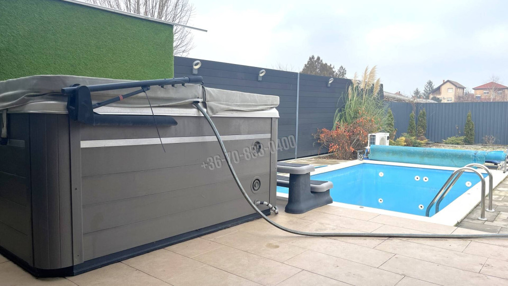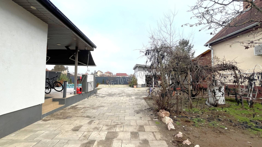 Az ingatlan 3×25 A ipari árammal rendelkezik, a 13 kW teljesítményű napelemrendszer pedig biztosítja az akár 0 Ft-os rezsiköltséget. A kertkapu automatizált, az udvarban pedig egy 3×5 méteres ellenáramoltatós medence található. A terasz elektromos napellenzővel felszerelt, a 6 személyes jakuzzi pedig alku tárgyát képezi.