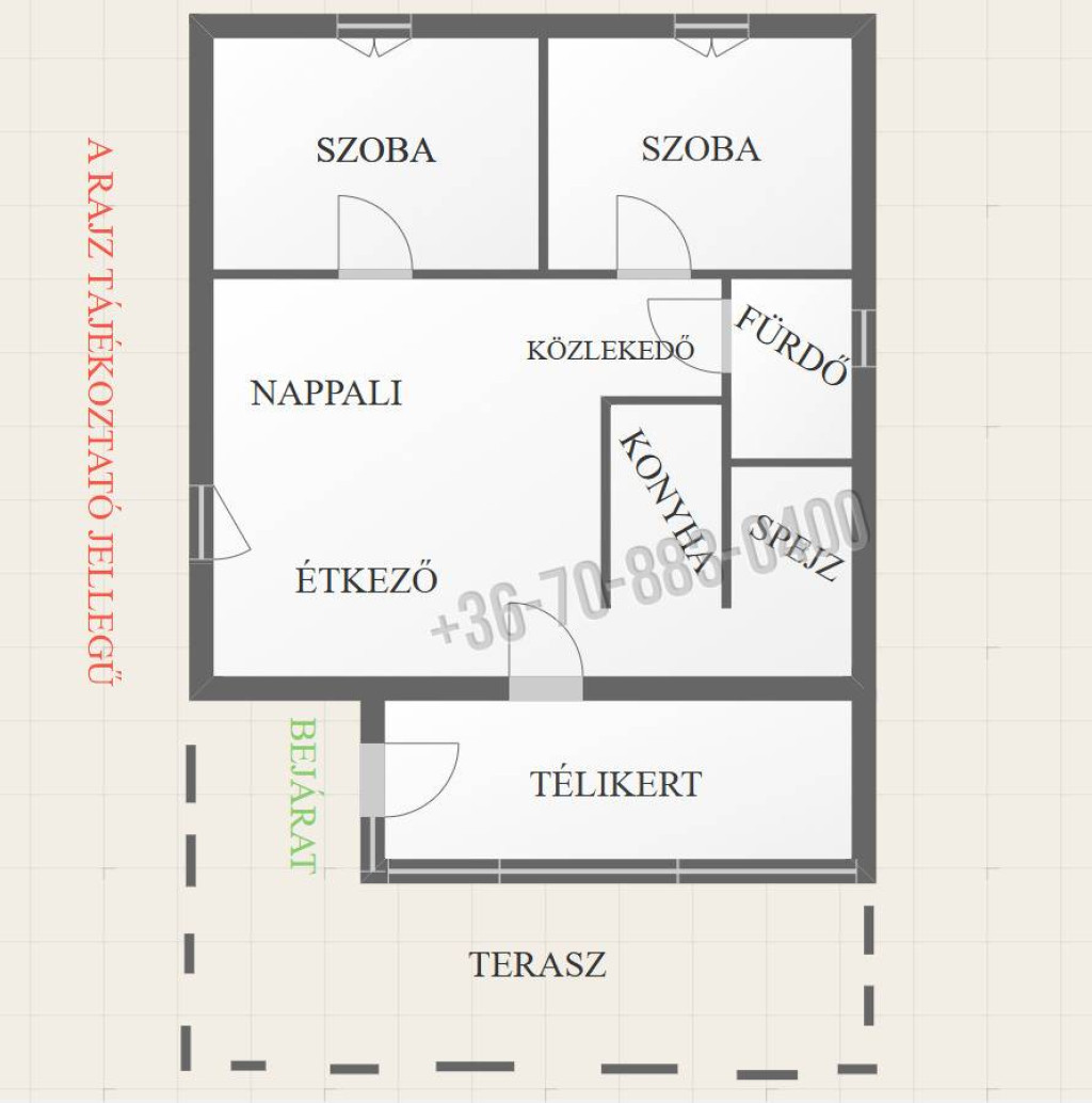 Az ingatlan kiváló elrendezésű: két kényelmes hálószoba, nappali–étkező–konyha egy légtérben, spejz, fürdőszoba és egy világos, élettel teli télikert kapott helyet benne.