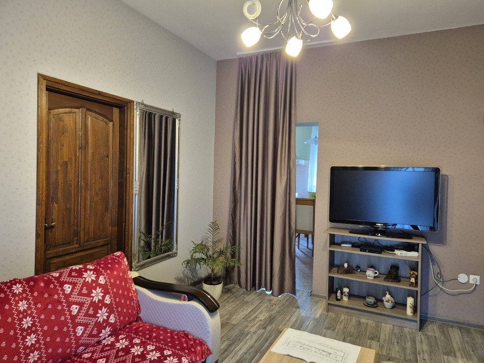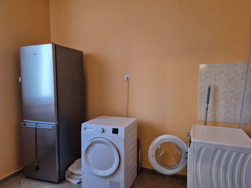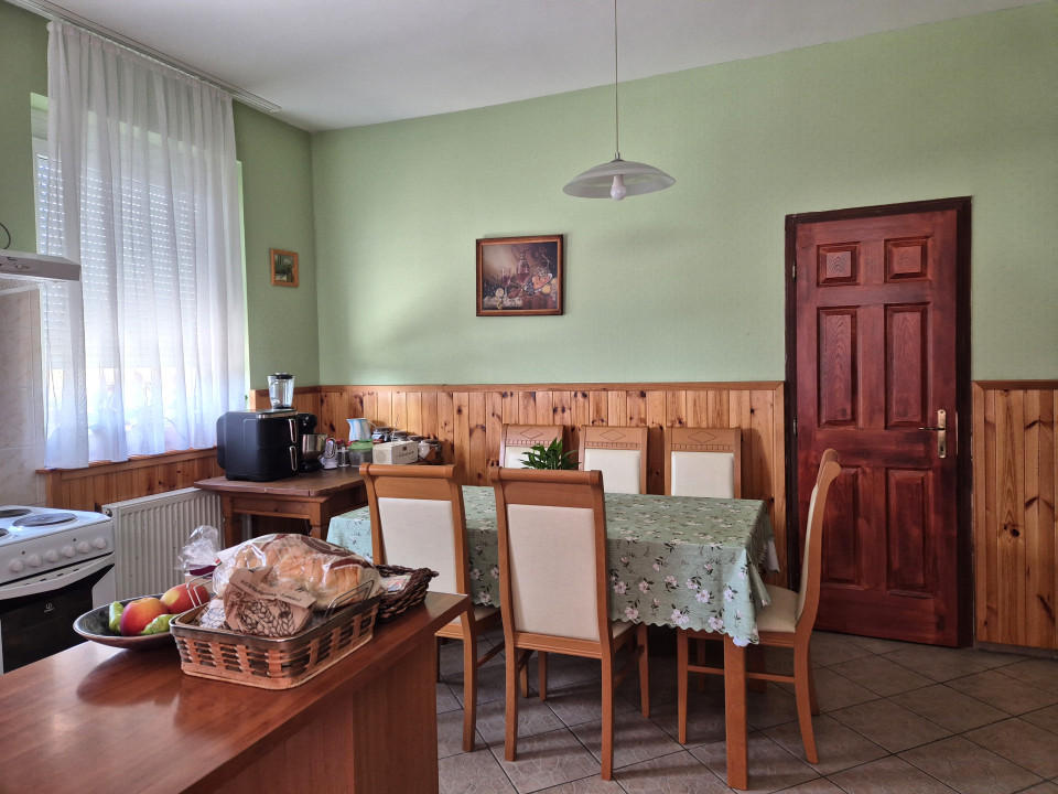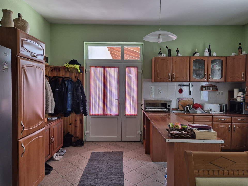Lakótér (90 m2): Praktikus elosztás – előtér, konyha-étkező, nappali, 2 szoba, mosókonyha, mosdó, zuhanyzó, WC.