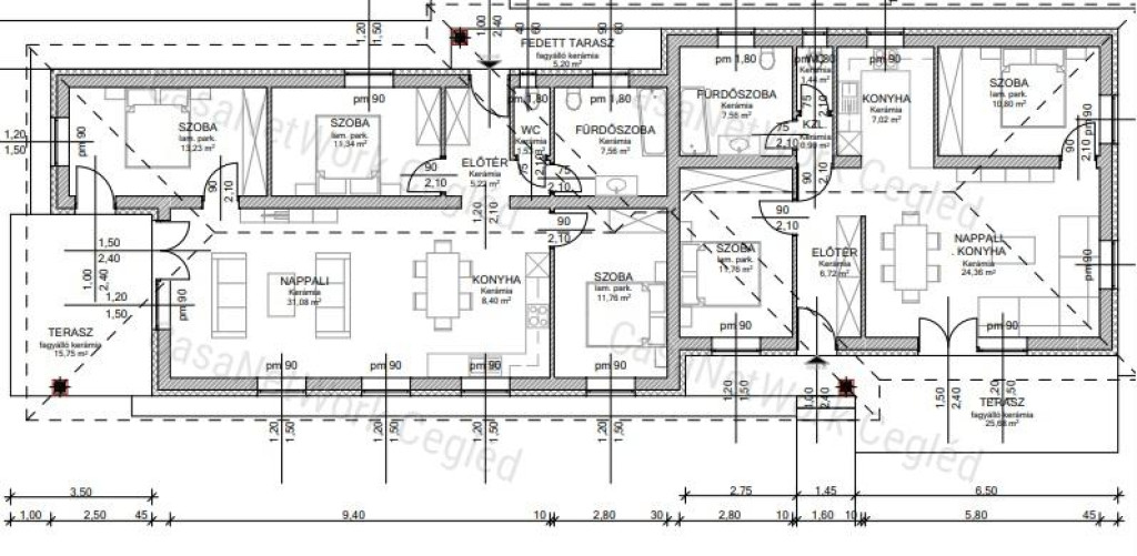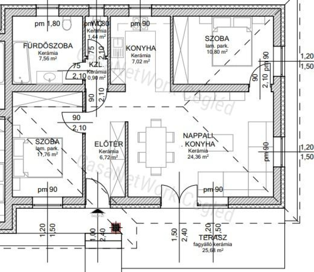 A CasaNetWork Ingatlanhálózat kínálatában eladó épülő ikerházak Újszászon! Az ingatlan hirdetési azonosítója: 174602083A hirdetett lakás: A. lakás: fűtött lakótér: 70,56 nm + 25,68 nm teraszA ház modern technológiával, kiváló minőségű anyagokból készül: Phorotherm 30-as falazat kiváló hőszigetelő képességekkel rendelkezik, így télen-nyáron komfortos hőmérsékletet biztosít. A nyílászárók hő- és hangszigetelő műanyag ablakok, amelyek fokozzák az energiahatékonyságot, és kellemes belső klímát teremtenek.Az ikerházakhoz saját kertrész és autóbeálló tartozik.A fűtésről kondenzációs gázkazán gondoskodik padlófűtéssel. A nyári hőséget lakásonként 1 db inverteres klímaberendezés teszi elviselhetővé.Ez az otthon minden műszaki és kényelmi igényt kielégít, amit a modern családi élet megkövetel.Főbb jellemzők:Tágas belső tér: 2 szoba, nappali-konyha, fürdőszoba+Wc, külön WC, háztartási helyiség, előtér és terasz.Minőségi burkolatok: Laminált parketta melegburkolatként, választható mintázattal. Hidegburkolat: padlólap, legfeljebb 6.000 Ft/m² értékben.Modern nyílászárók: Műanyag ablakok hő- és hangszigetelő, 3 rétegű üvegezéssel, erkélyajtók – a lakás szellőztetése a tulajdonos feladata.Felszerelt fürdő és konyha: Kád vagy tusoló, kézmosó a fürdőben, wcKorszerű fűtési rendszer: kondenzációs kazán, padlófűtés és radiátoros fűtés kombinációja.Klíma: Inverteres klímaberendezés a kellemes nyári hőmérsékletért.Biztonságos bejárat: többpontos zárral ellátott biztonsági ajtó.Műszaki adatok:Válaszfalak: 10 cm-es tégla, kiváló hang- és hőszigeteléssel.Tető: Azzurro betoncserépKözművek: Gáz, víz, villany, csatornaVárható átadás: 2026 nyár elejeAz ingatlan műszaki tervei alapján hirdetjük meg. Kérjük, vegye figyelembe, hogy a használatbavételi engedély kiadását követően kisebb m²-eltérések előfordulhatnak.Amennyiben a CasaNetWork Cegléd által kínált, 174602083 azonosítószámú téglalakás, vagy bármely más ingatlan felkeltette érdeklődését, keressen bizalommal a megadott telefonszámon!Felhívjuk figyelmét, hogy a hirdetésben szereplő adatok a megbízótól származnak, azok pontosságáért felelősséget nem vállalunk.Ügyfeleink részére díjmentes, bankfüggetlen hitelügyintézést biztosítunk! 2025 augusztusától elérhetőek a 3%-os lakáshitelek első lakásvásárlóknak!CasaNetWork – Ingatlanban otthon vagyunk.