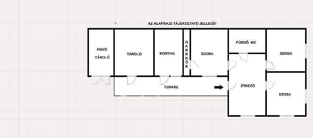 A házban 3 szoba, konyha, étkező/nappali, fürdő/wc és egy gardrób található.