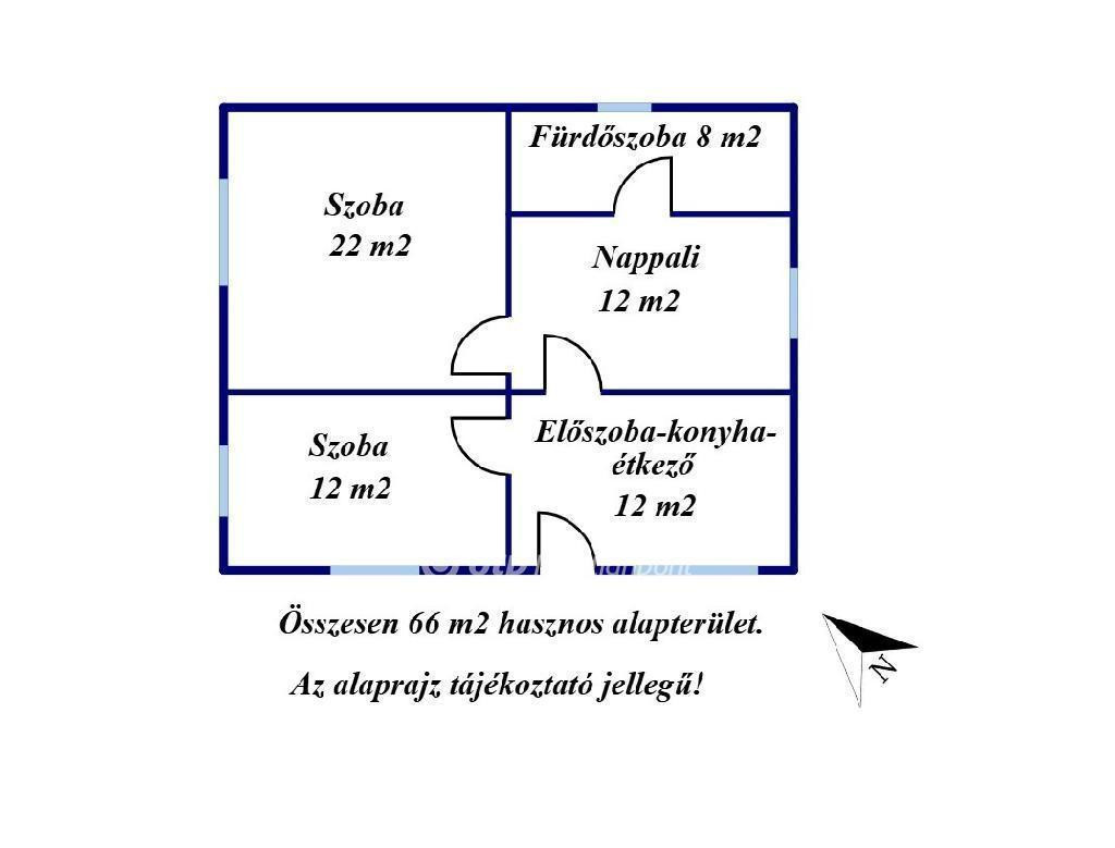 - Helyiségek: 2 szoba, nappali, előszoba/konyha/étkező és fürdőszoba (WC-vel)