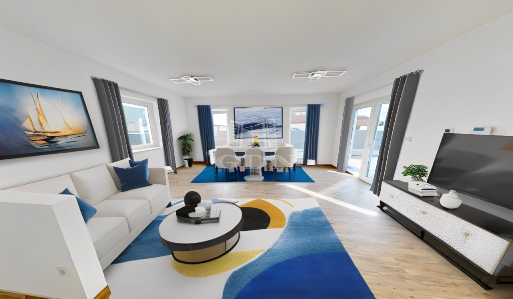 Az elegáns belső terekben a nappaliból és az egyik hálóból nyílik a tágas, 25m2-es TERRASZ, ahol kiválóan lehet pihenni.