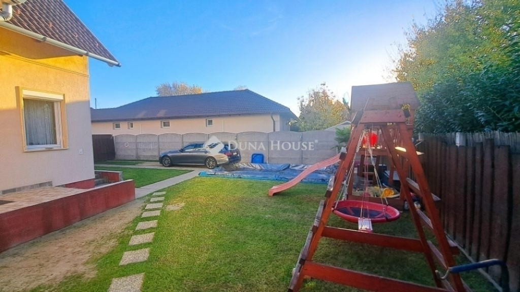 Megvételre kínálok Üllőn egy Nappali+ 4 szobás, Duplakomfortos Ikerházat rendezett szép udvarral és Medencével, csendes környékenAz ingatlan főbb jellemzői: - Építés éve: 2007- Szerkezete: Tégla- Szigetelés: 10 cm- Hasznos alapterület: 122 nm + 18 nm terasz + - Telek mérete: 470 nm , Összközműves, szorgalmi útról megközelíthető- Fűtése: Turbo Gázkazán, Padlófűtés mindenhol, a szobákban pedig radiátorok vannak.- Földszinten (Nappaliban) 5 kw-os Hűtő-fűtő klíma- Emeleten ( 3 db szobánként 1 db) 3,5 kw-os Hűtő-fűtő klíma- Műanyag nyílászárók szúnyoghálóval és redőnnyelElrendezése: - Földszint: Nappali, Szoba, Előszoba, Étkező, Konyha, Fürdőszoba, Wc, Kamra, Terasz - Emelet: 3 db Szoba, Fürdőszoba+ Wc, KözlekedőA ház elhelyezkedése és kialakítása kiválóan alkalmas nagycsaládosok számára is.Jól átgondolt és kivitelezett, tágas életterek állnak rendelkezésre, szintenként 1-1 Fürdőszobával és illemhelységgel.Elektromos kapun jutunk be az udvarra, ami applikáción keresztül és távirányítóval is vezérelhető, nyitható.Az udvaron található:- 7mx3,5m-es gépesített medence, amely 1,5 m mély, 9 kw-os hűtő-fűtő hőszivattyúval biztosítja a kellemes hőmérsékletet, a hangulatot pedig led világítás biztosítja- játszótér- sütügető- 3x5 méteres mobilgarázsA vételár részét képezi:- mobilgarázs- az emeleten lévő gardróbszekrény a közlekedőben- az emeleti szobában található fél éve vásárolt franciaágy Ez az ingatlan valóban különleges és tökéletes választás mindazok számára, Akik jól átgondolt és felszerelt, tágas, világos tereket keresnek.Amennyiben az ingatlan felkeltette az érdeklődését keressen bizalommal a hét bármely napján.Jöjjön el, nézzük meg együtt.