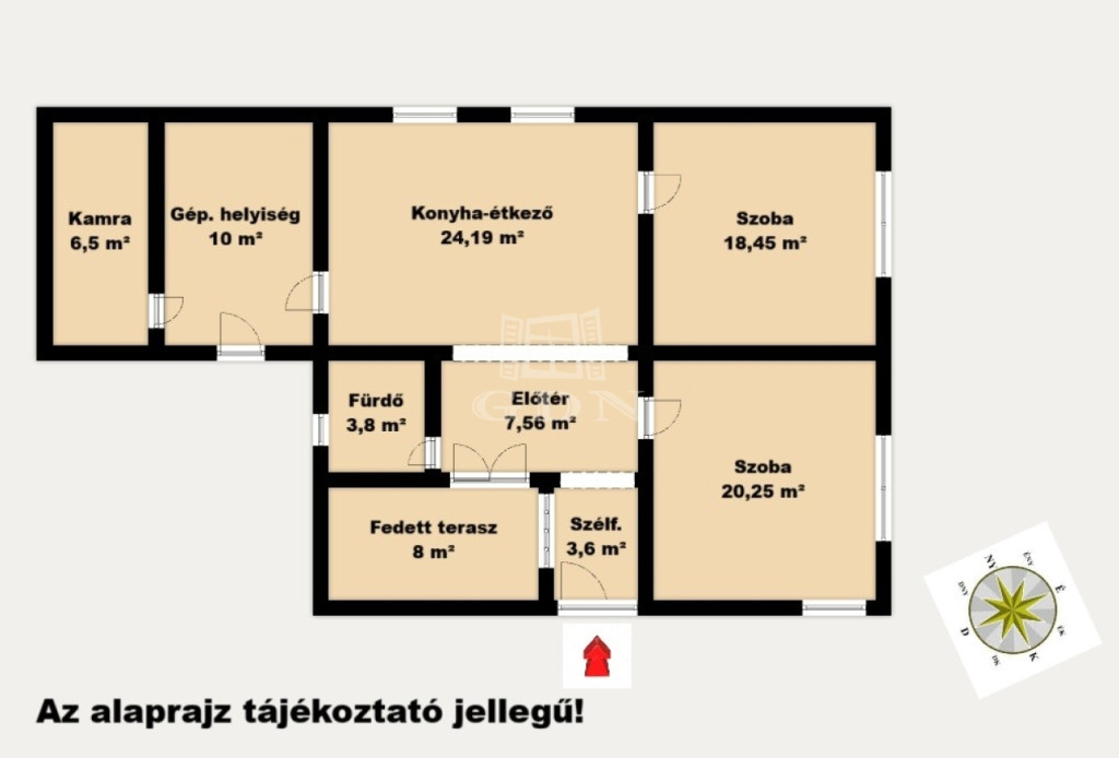 Belső elrendezés: három szoba, melyek közül kettő egymásból és külön-külön is nyílik. Kialakításra került egy AMERIKAI KONYHÁS nappali élettér. A fürdőszoba ABLAKOS, a toalettel egy légtérben. Az ingatlan BEFEJEZÉSRE VÁR, így TESTRE SZABHATÓ befejezést és belső kialakítást tesz lehetővé.